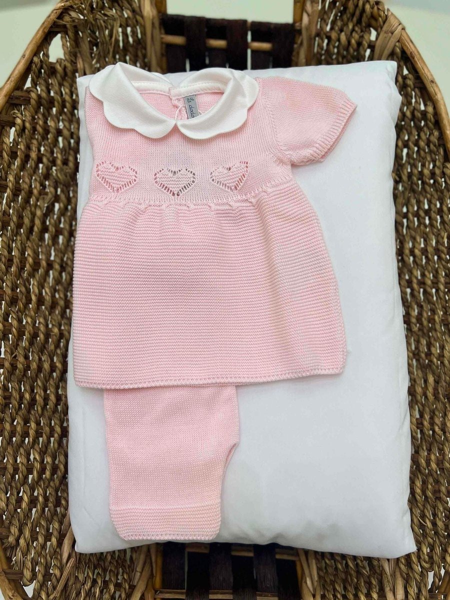 Completo clinico neonata con maglietta e short con trama traforata con cuori.