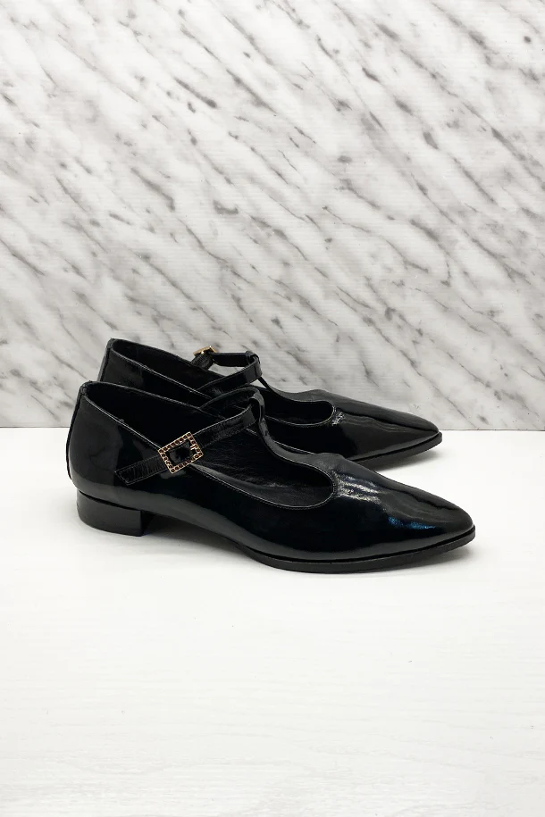 Décolleté sfilate in pelle solid color con fascia alla caviglia, fibbia metallica di regolazione, suola interna in pelle, tacco 10mm in legno con fondo e suola in gomma