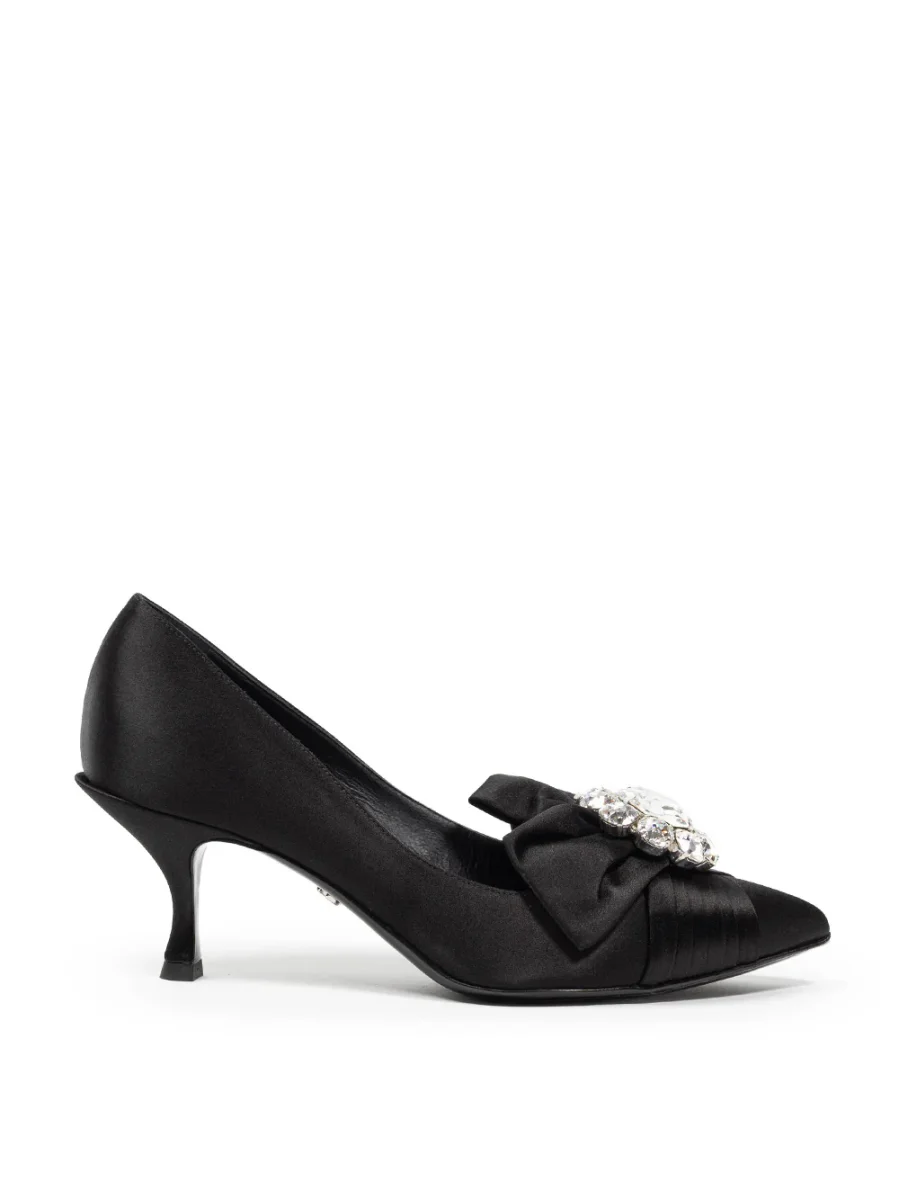 Elegante e raffinata, la décolleté è realizzata in raso e impreziosita da fiocco con cristallo applicato sulla tomaia.