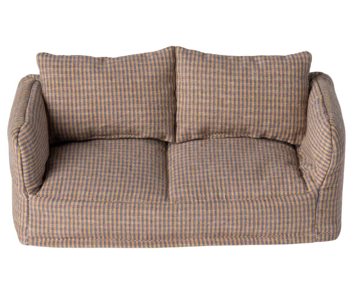 Eleganza e comodità sono le caratteristiche di questo divano Maileg. Perfetto per arredare la casa delle bambole o la casa di campagna e far riposare i tuoi amati compagni di gioco. Costruito in legno e rivestito con un morbido tessuto a quadretti, ha un design elegante e raffinato per un tocco di stile nel soggiorno della tua casa.