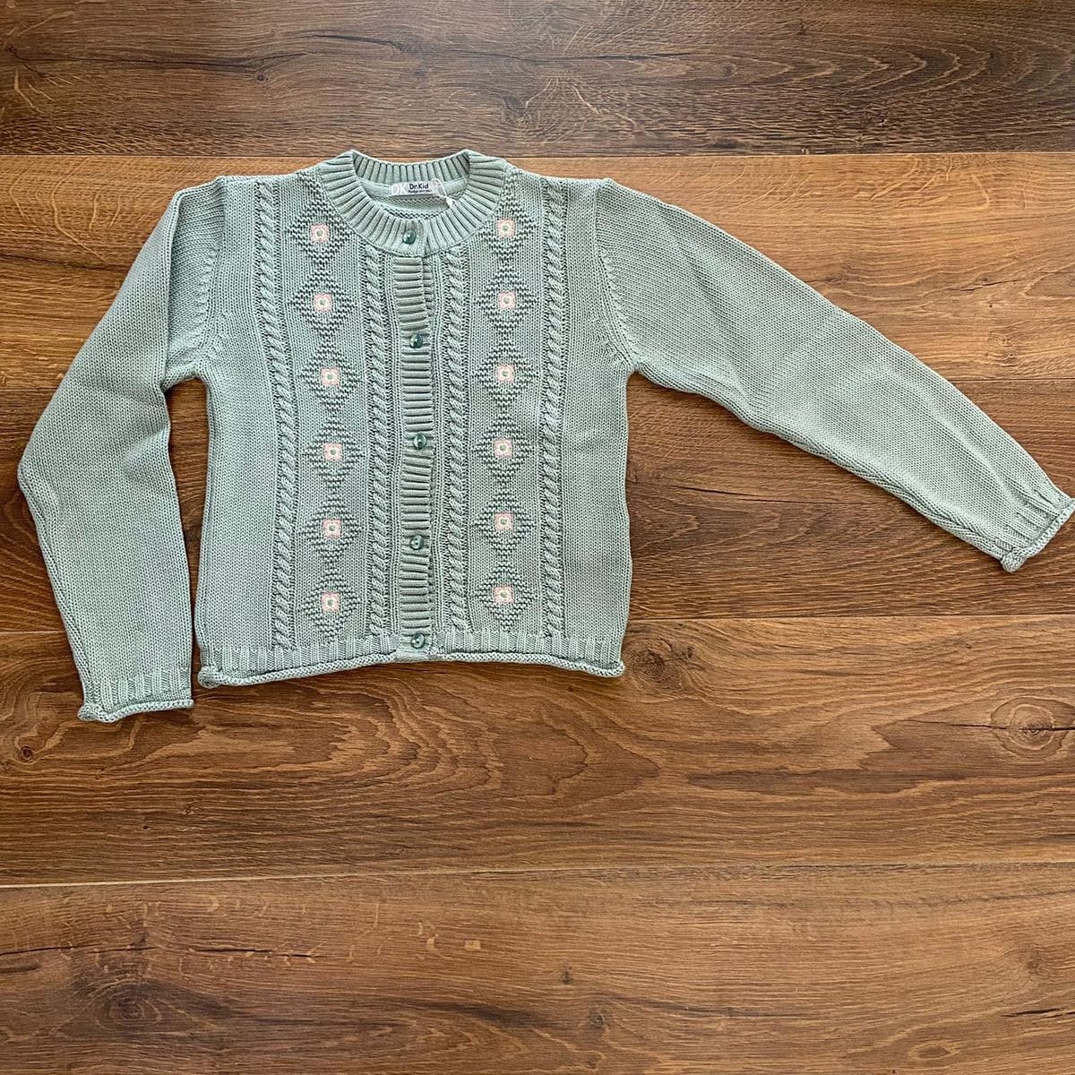Cardigan bimba con trecce laterali.