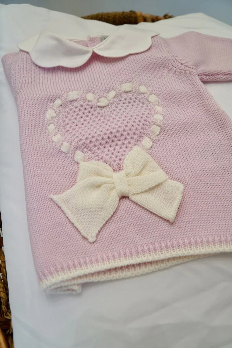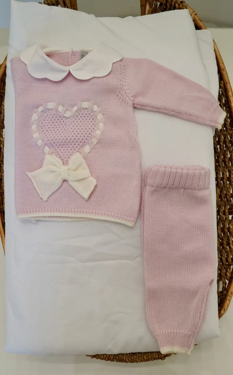 Completo spezzato in rosa con cuore 100% pura lana