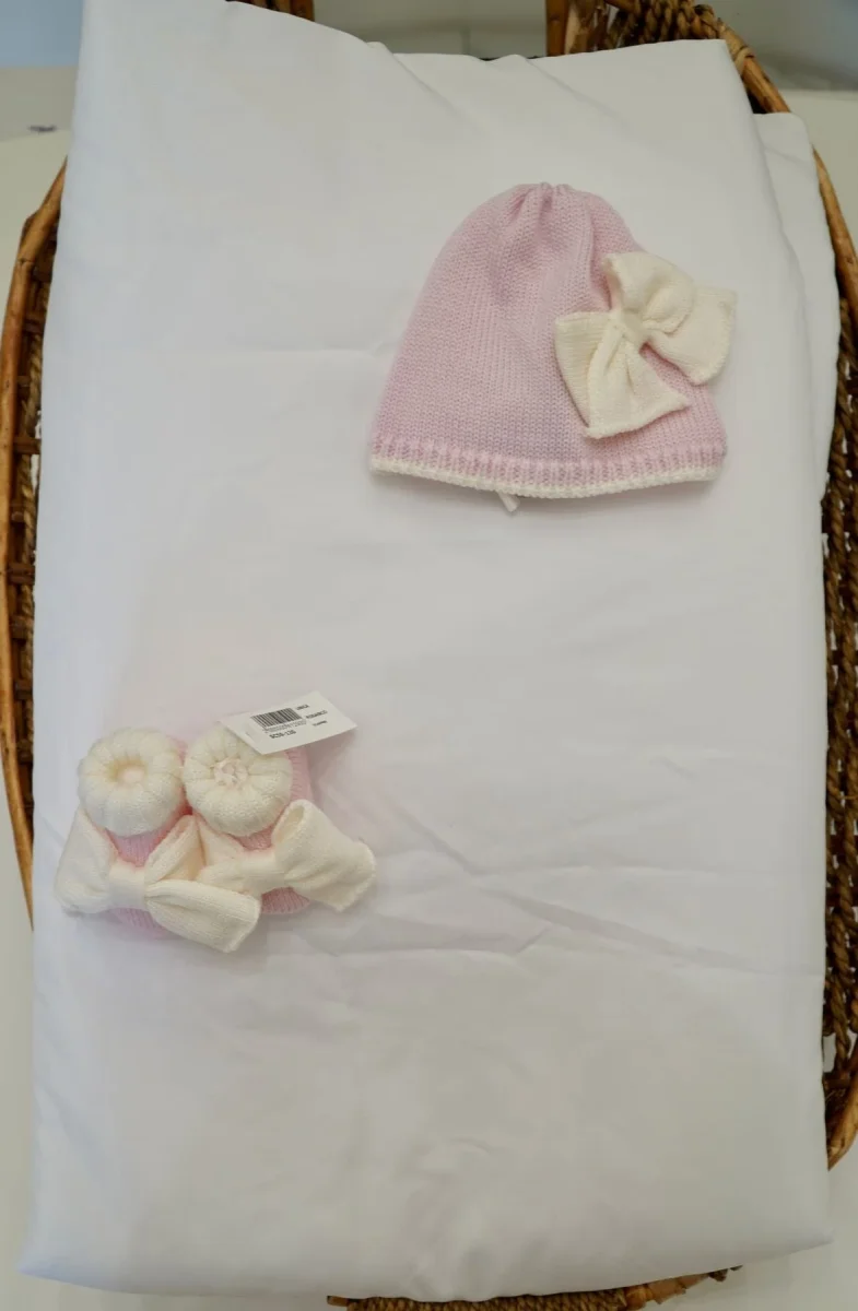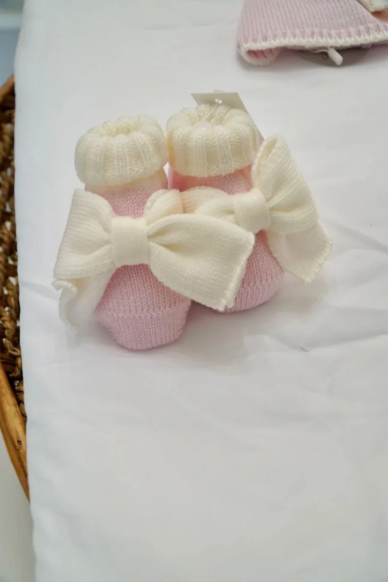 Set Coordinato Cappello e scarpette in rosa 100% pura lana