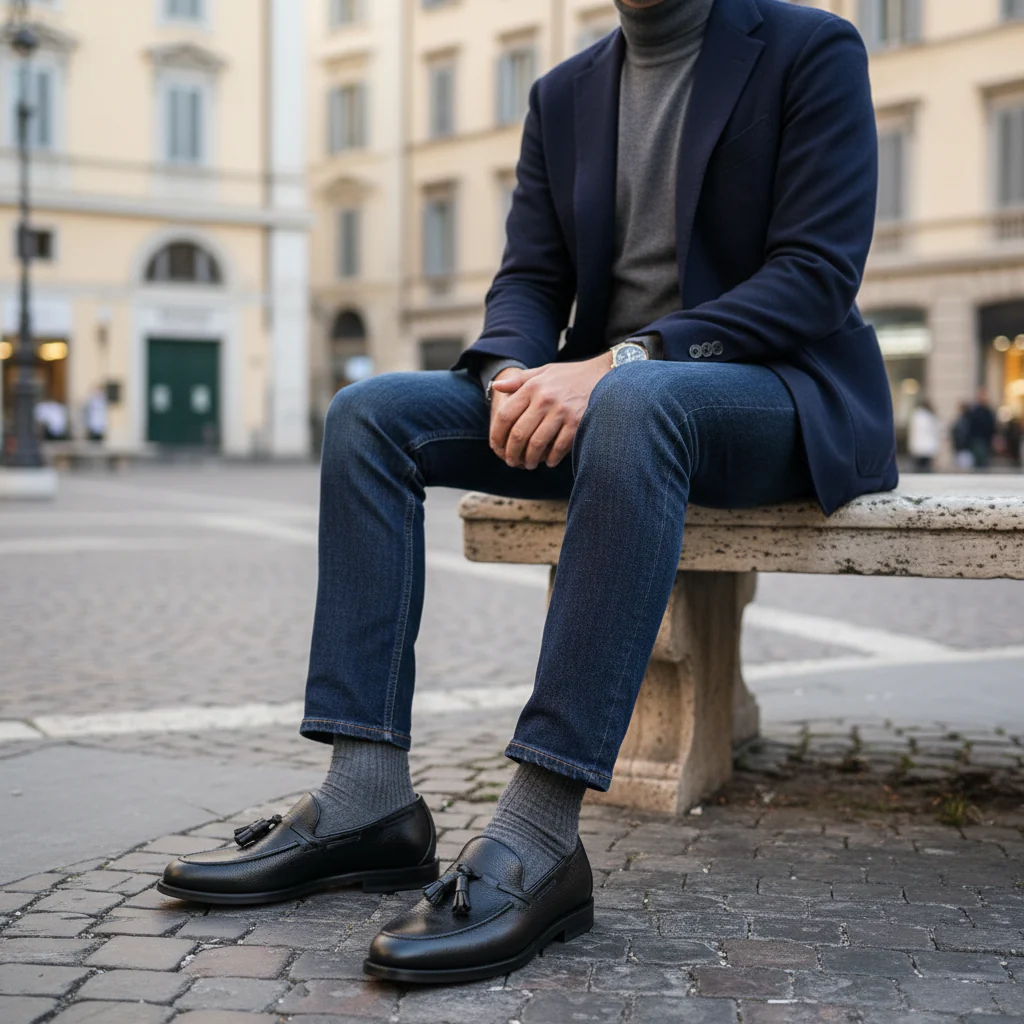 In origine calzature dei nativi americani, portati alla ribalta da personalità come Fred Astaire ed Elvis Presley, i mocassini sono ancora oggi tra le scarpe più indossate sui red carpet di tutto il mondo. Enna è il nostro modello in pelle di vitello martellata, arricchito con nappine, perfetto per chi vuole distinguersi tra la massa, indossando una calzatura comoda ed unica.