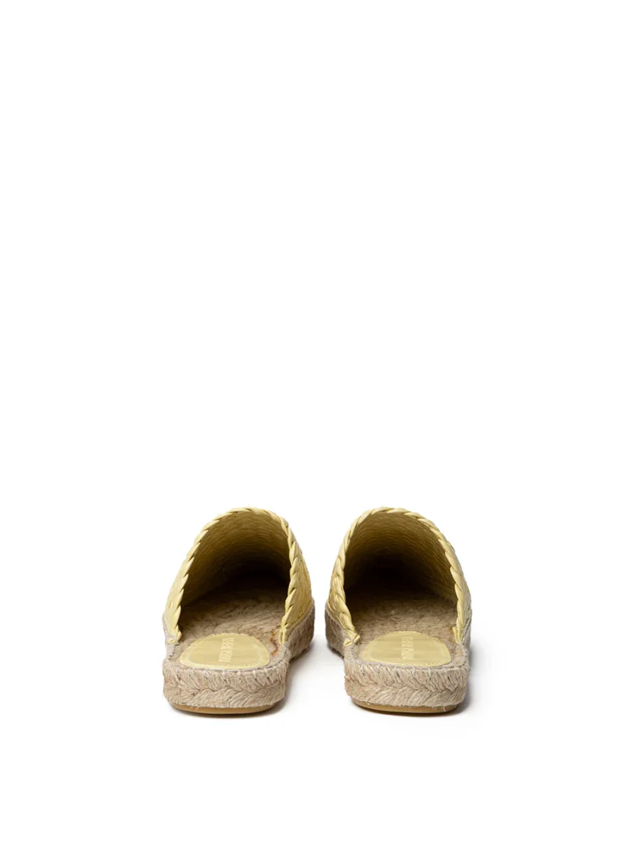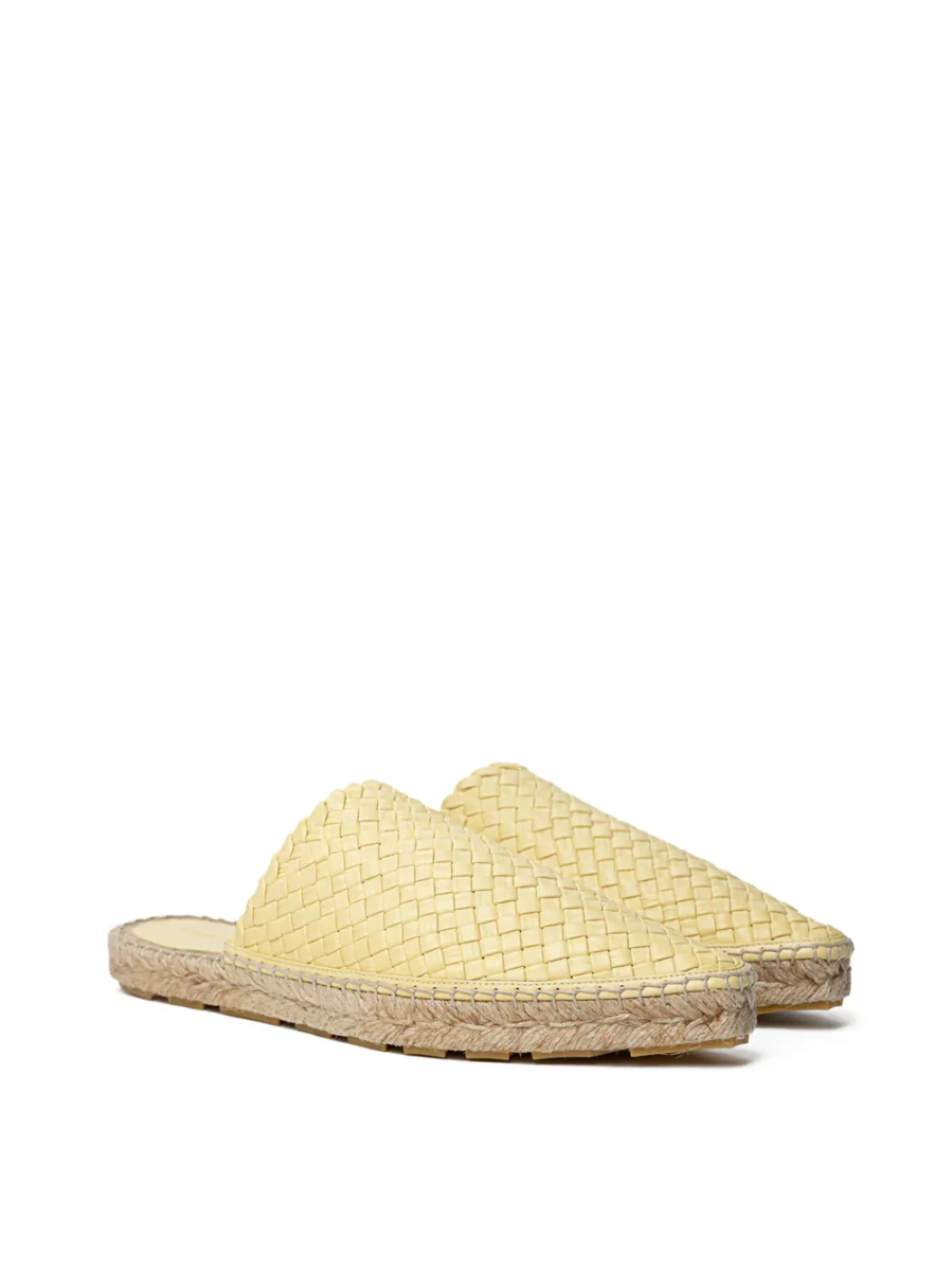 Espadrillas Lagoon in Giallo con Intreccio Bottega Veneta. A punta, aperte sul retro, tomaia in giallo chiaro con motivo iconico intreccio, suola in corda intrecciata, dettagli in gomma sulla parte esterna.