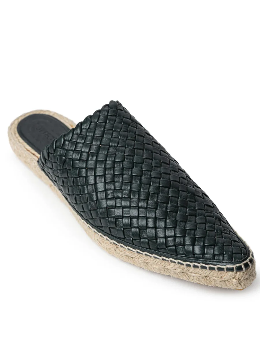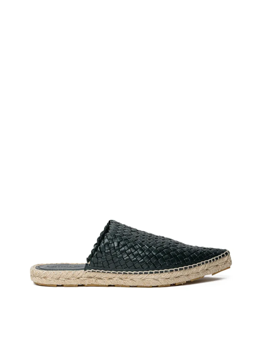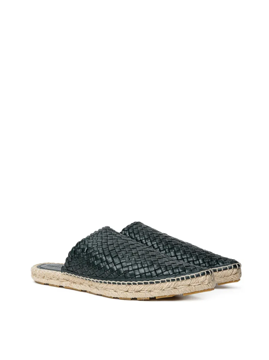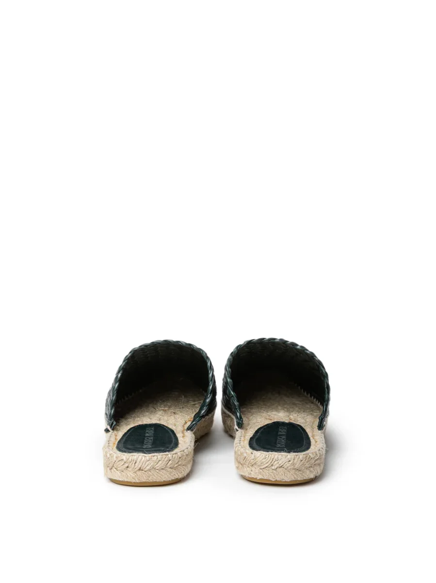 Espadrillas Lagoon con Intreccio in Verde Scuro Bottega Veneta. A punta, aperte sul retro, tomaia in verde scuro chiaro con motivo iconico intreccio, suola in corda intrecciata, dettagli in gomma sulla parte esterna.