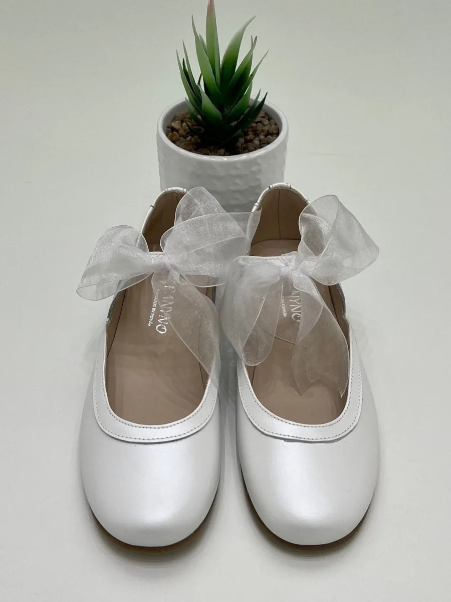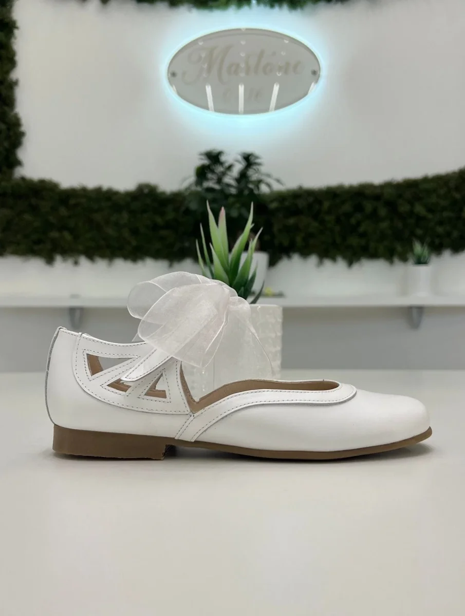 Ballerina aperta sul retro in pelle con fiocco in tulle.