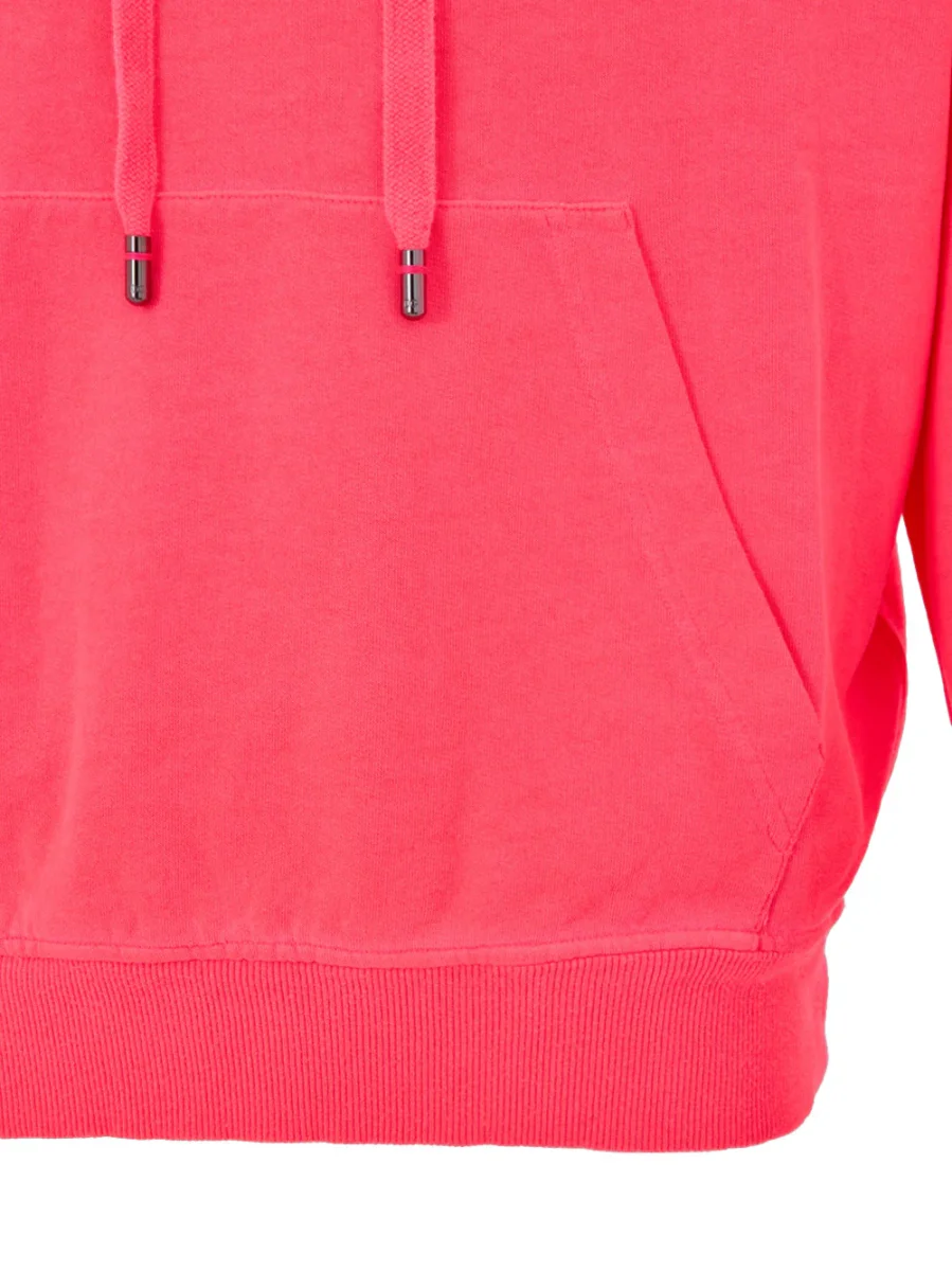 Felpa con Cappuccio Rosa con Logo DG Dolce & Gabbana. In cotone rosa shocking, con maxi tasca frontale applicata, cappuccio regolabile con cordino, logo DG stampato frontalmente in rosa fluo. Relaxed fit