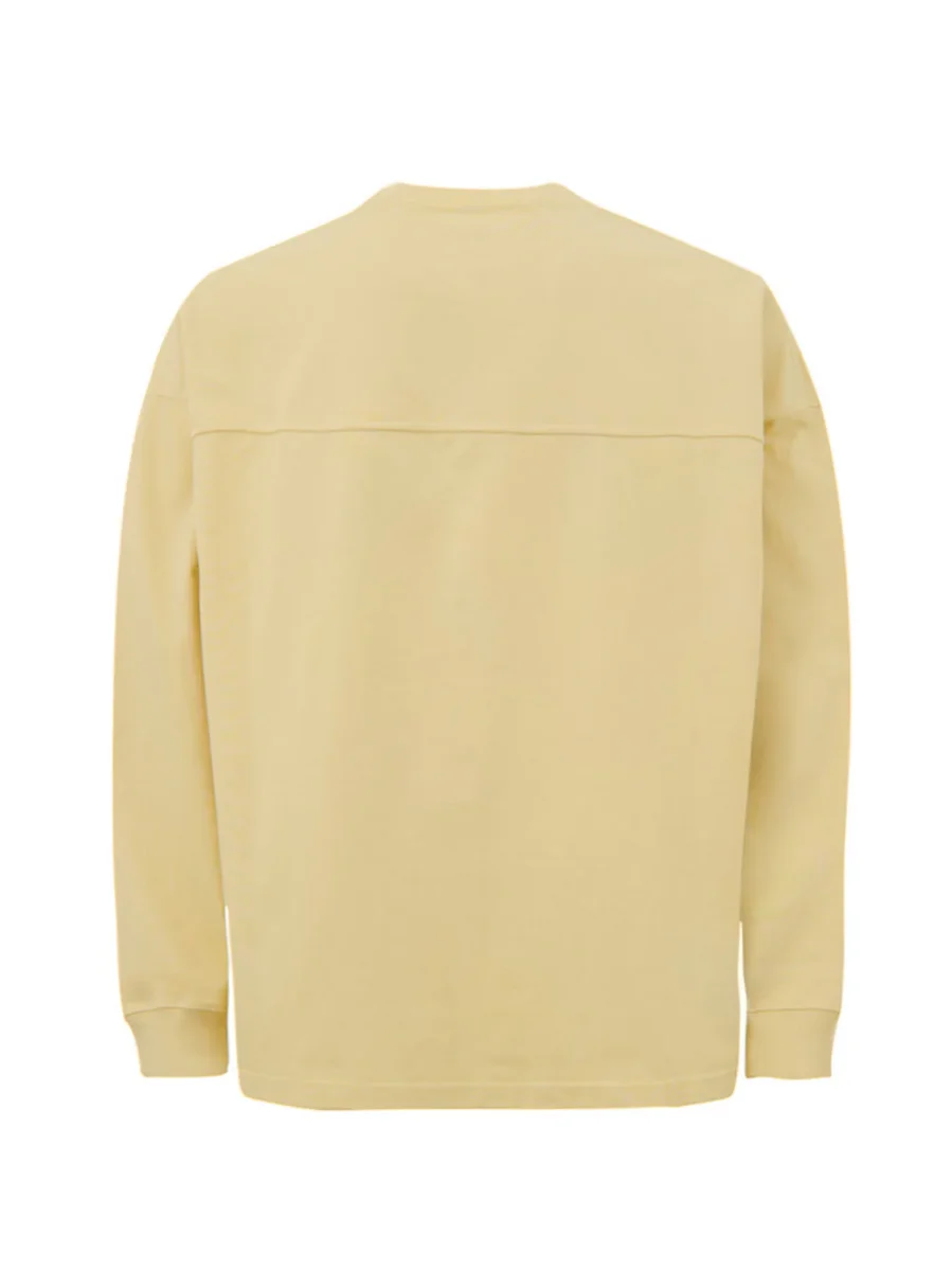 Girocollo, maniche lunghe, linea basica. dritta sul fondo, sul retro dettaglio cucitura all’altezza delle spalle. Vestibilità overfit
