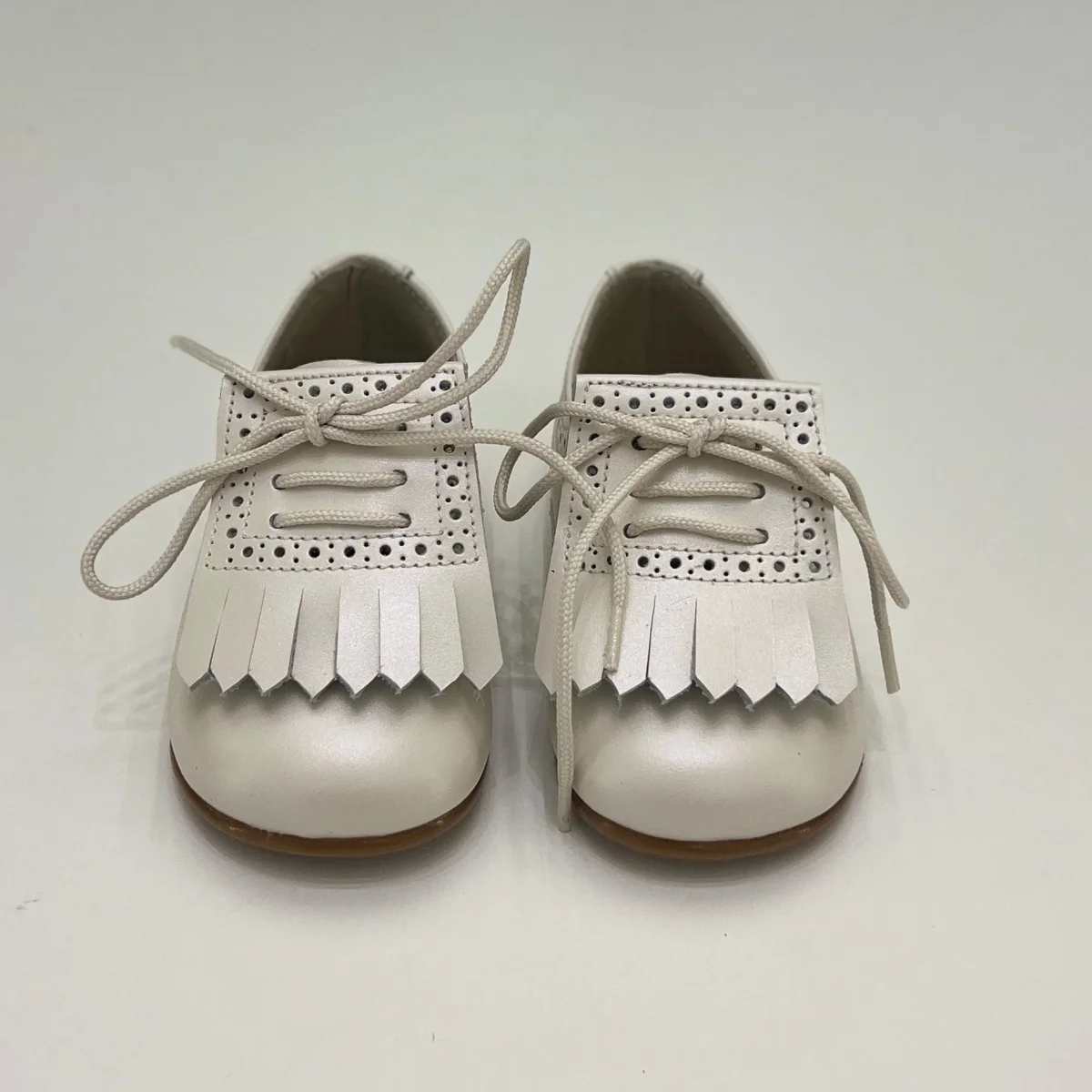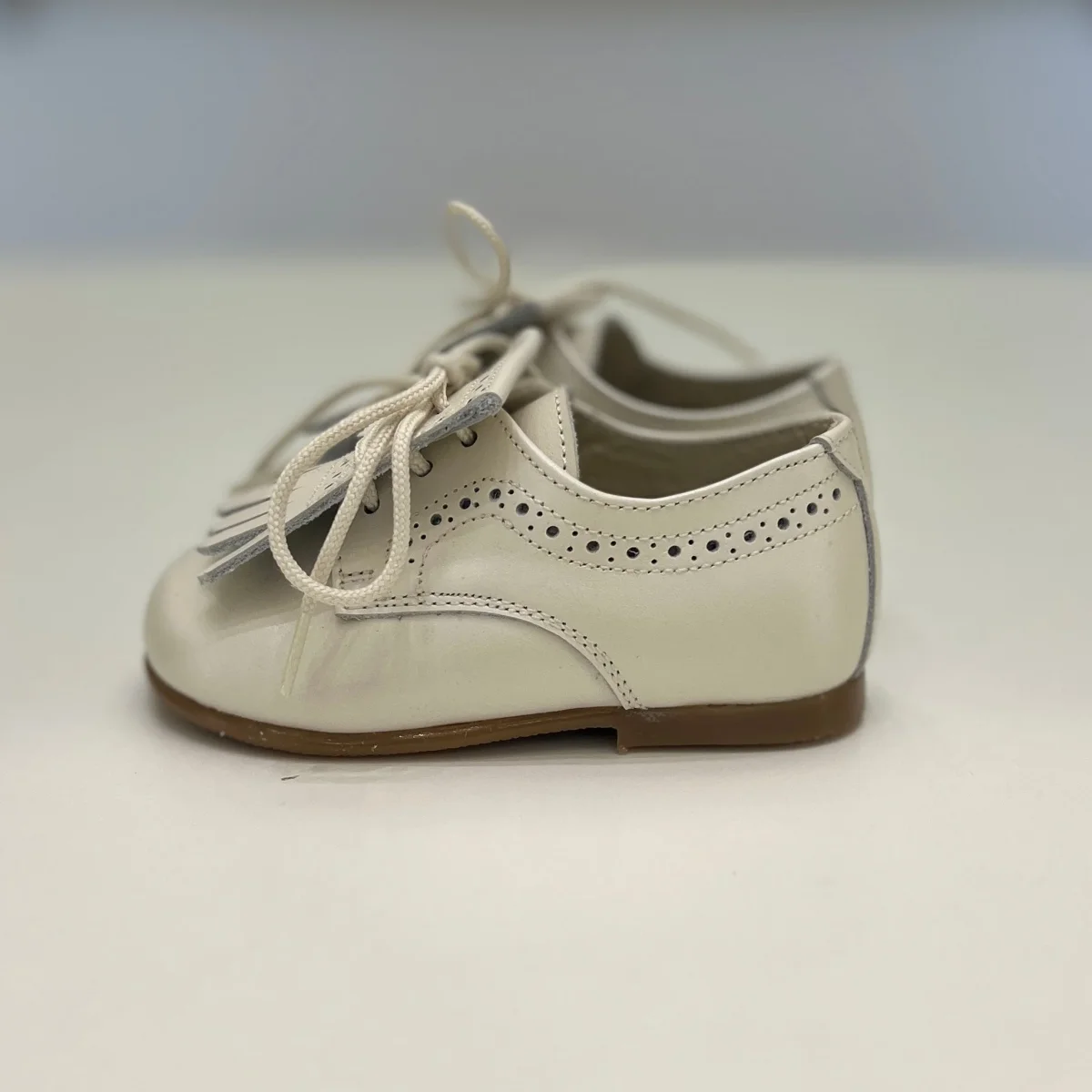 Francesina bimbo color beige con frange removibili.