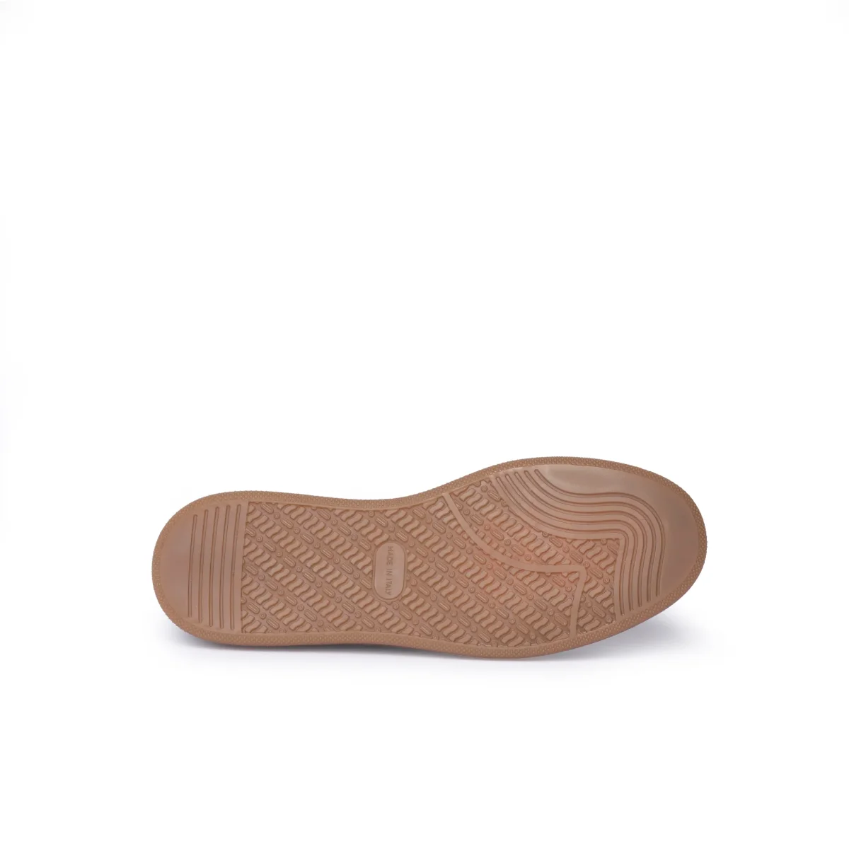 Realizzate artigianalmente in Italia in morbida pelle bottolata e montate su una suola leggera e flessibile in gomma. Questa versione invernale, riproposta dal prodotto già presente nella collezione estiva, presenta un elegante fondo ambra.