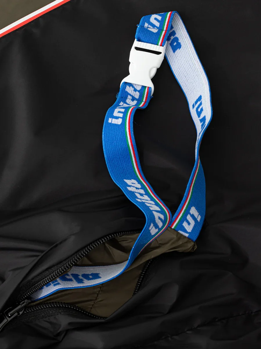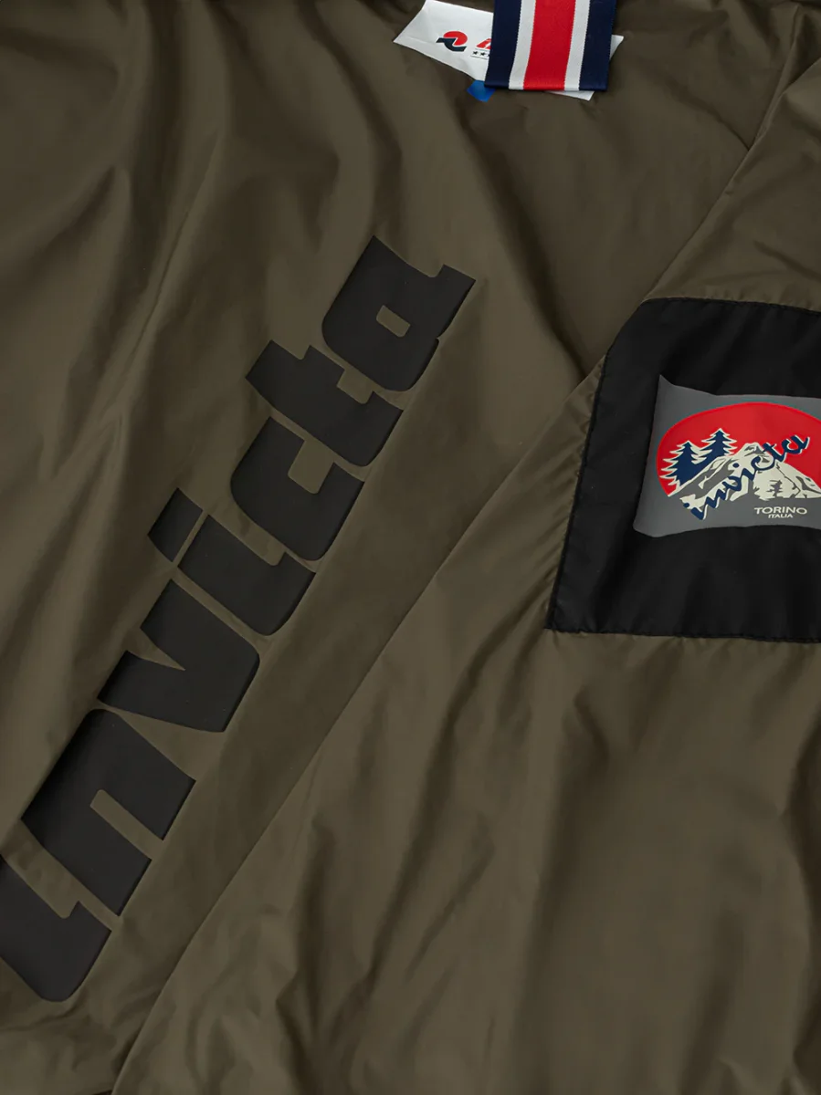 Giacca a Vento Nera Invicta. Chiusura frontale con zip tono su tono, piping a contrasto su tutta la cerniera, due tasche a filetto laterali chiuse con zip, elastico sottile in vita, cappuccio con elastico interno. Tasca interna chiusa, fodera a contrasto con maxi logo, tessuto tecnico idrorepellente. All’interno della tasca cinghia logata per avvolgere il capo. Composizione: 100% Poliammide-Sku interno:24MG70
