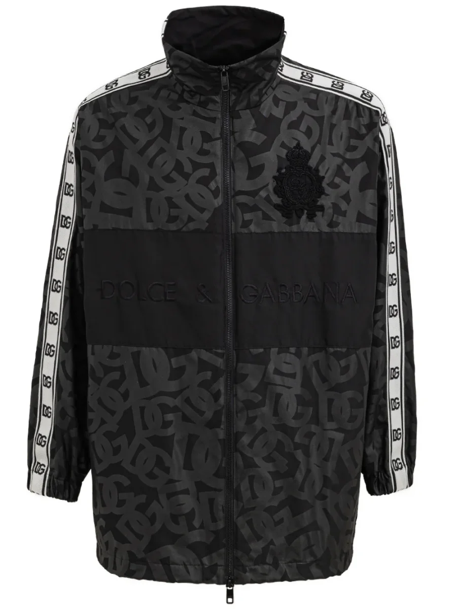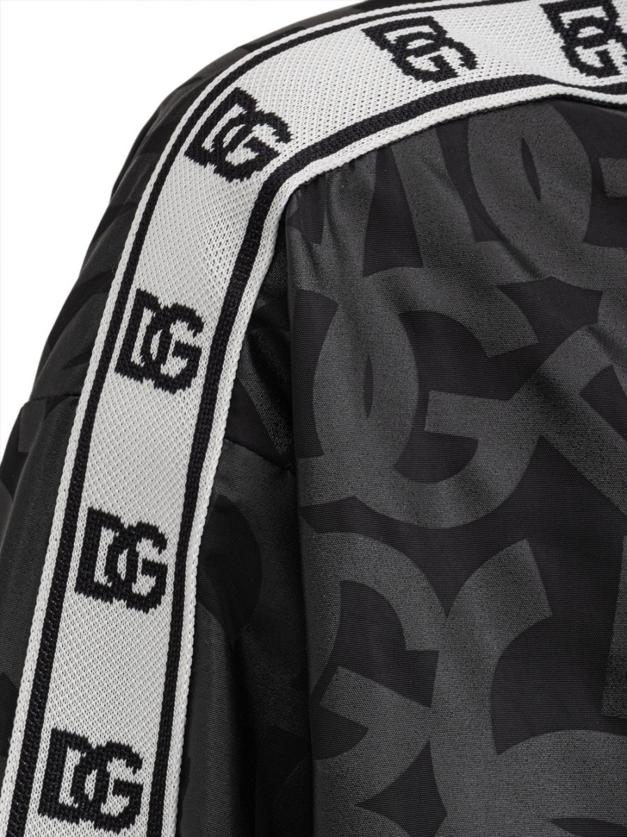 Giacca a collo alto con stampa DG all over e bande logate laterali su maniche