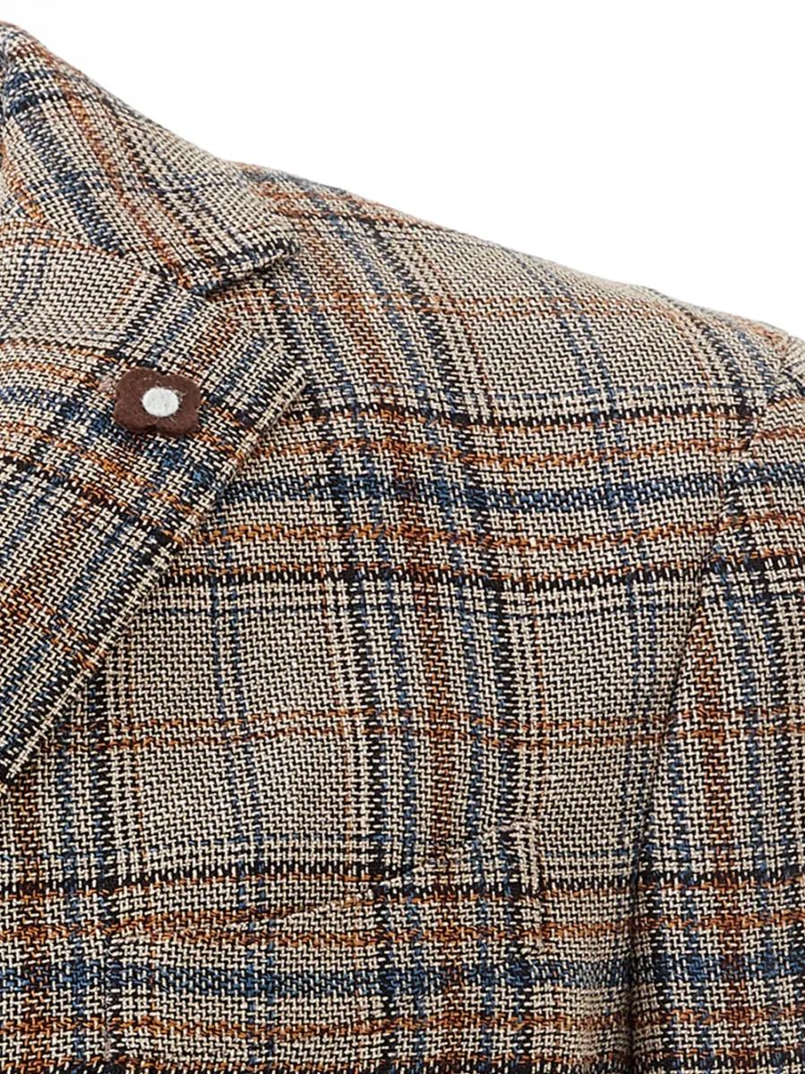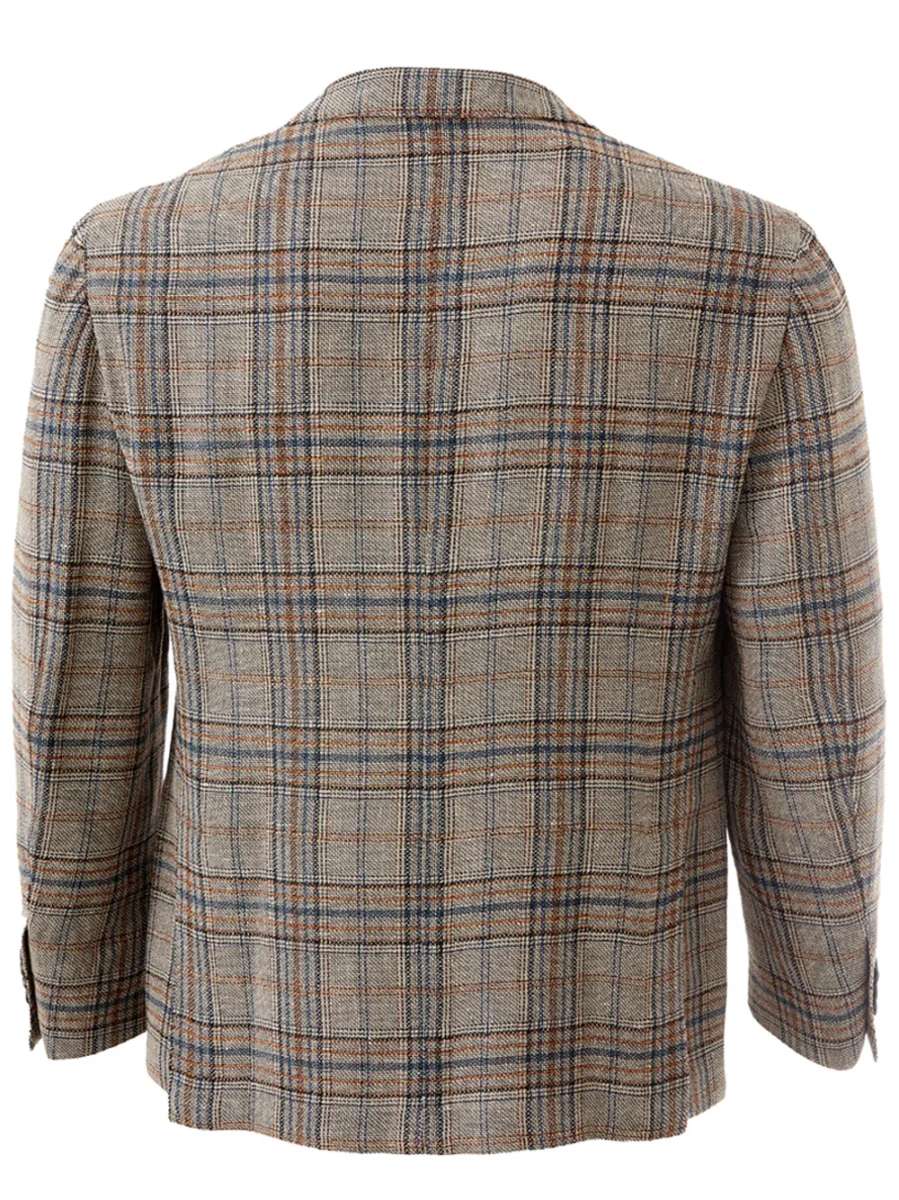 Giacca Check Tortora/Multicolor Lardini tre bottoni, due tasche applicate, due spacchetti posteriori, no fodera interna. Composizione: 100% Lino-Sku interno:23MG344-346