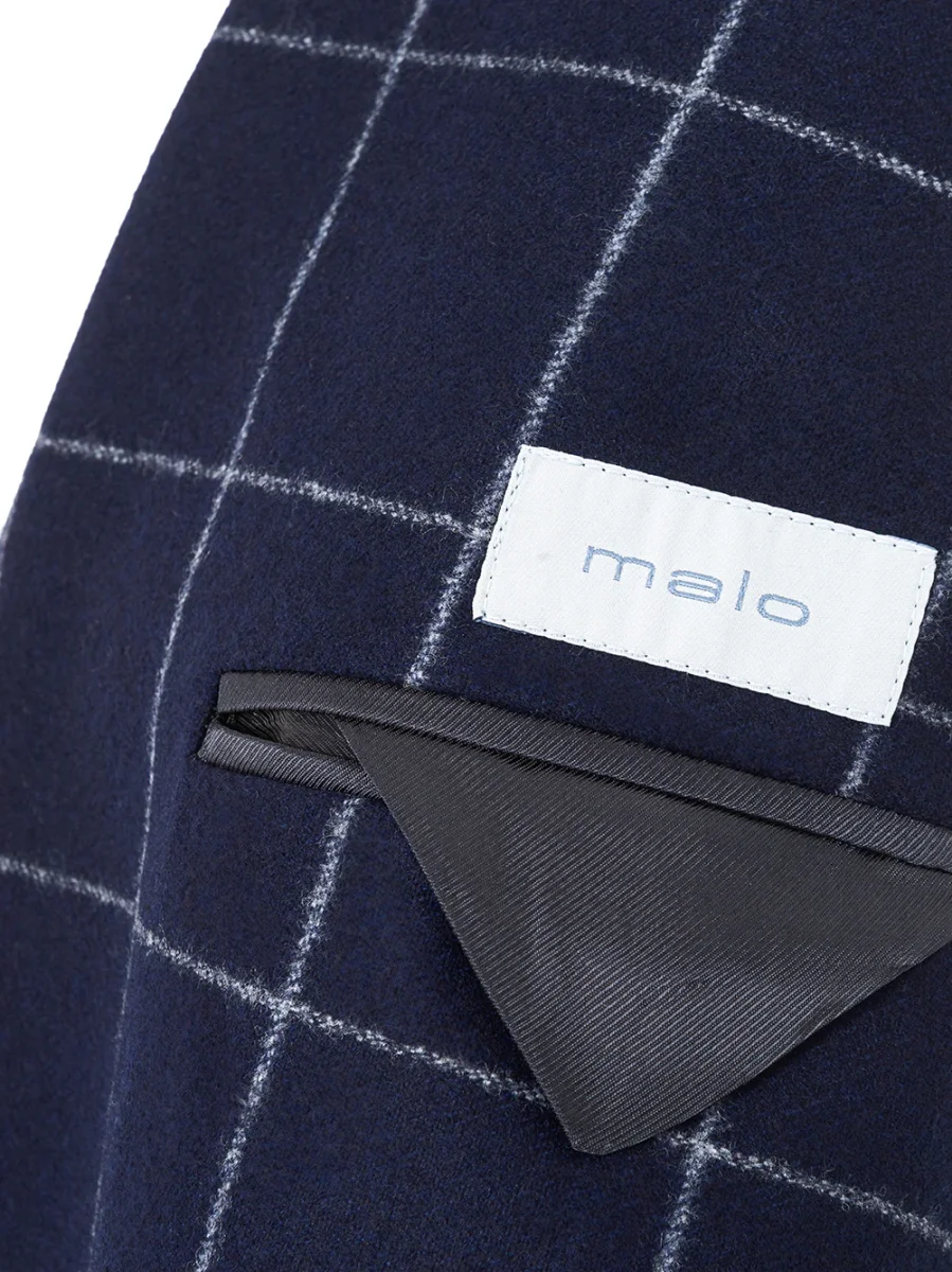 Giacca in lana blu a quadri a contrasto
