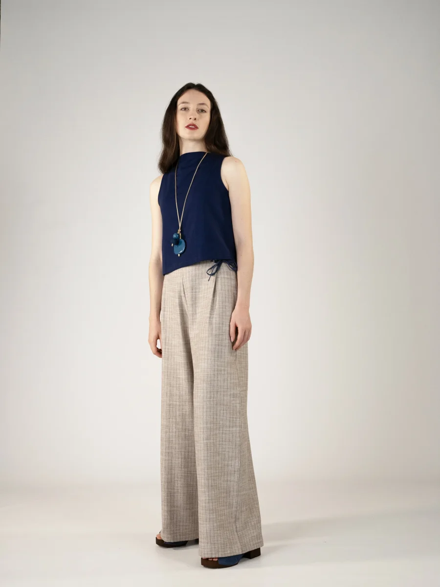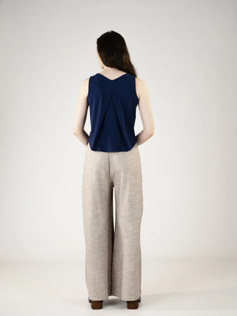 Gilet in felpa leggera, svasato, con scollo a barchetta davanti e scollo a V e due profonde pieghe dietro.