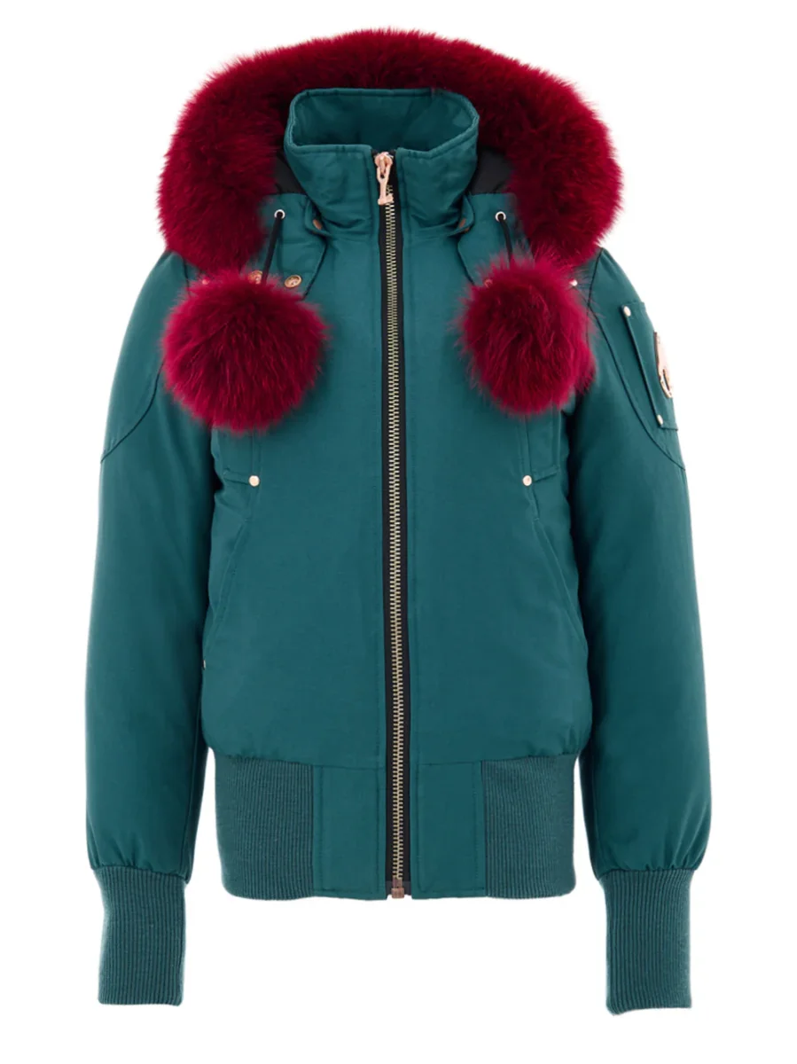 Giubbino Bomber Imbottito in Verde Petrolio con Pompom Moose Knuckles