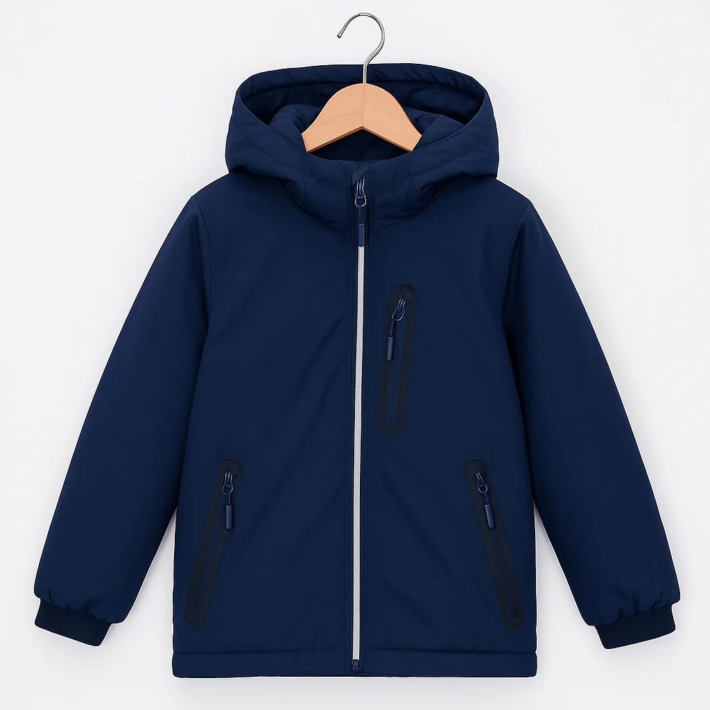 Giacca invernale bimbo con zip e cappuccio.