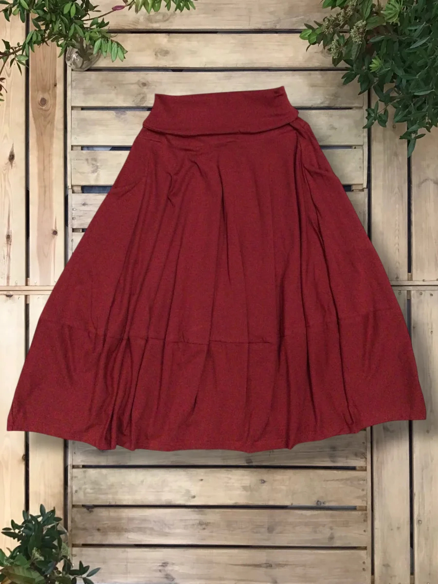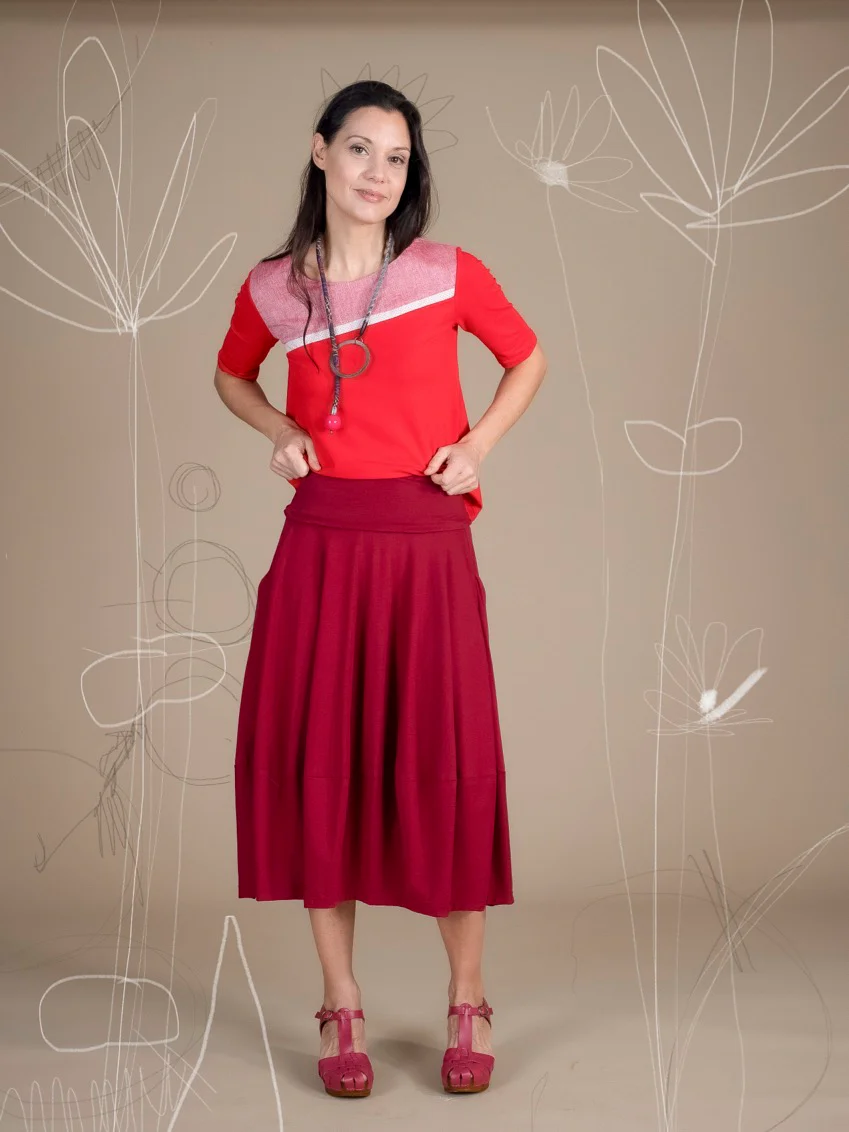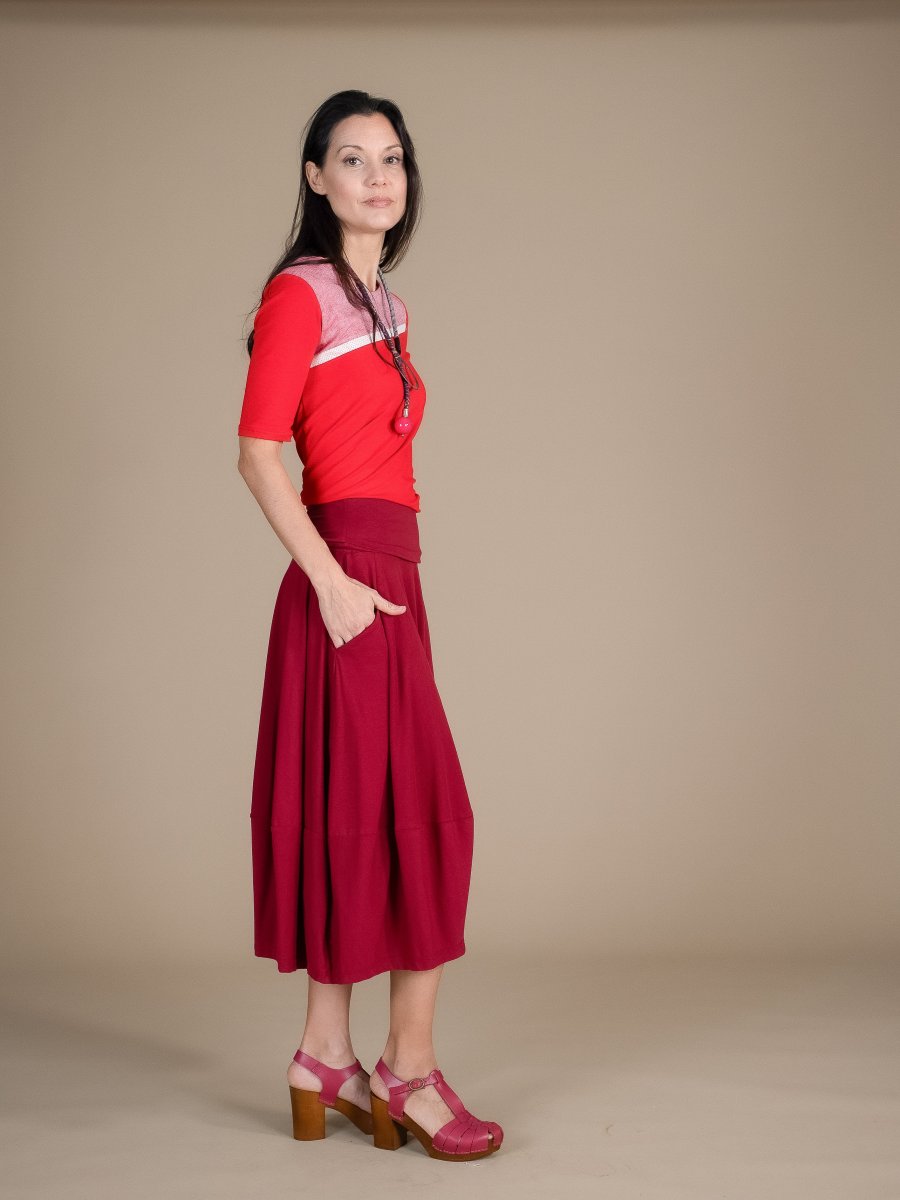 Gonna in jersey di cotone a palloncino, con tasche e banda in vita risvoltabile.