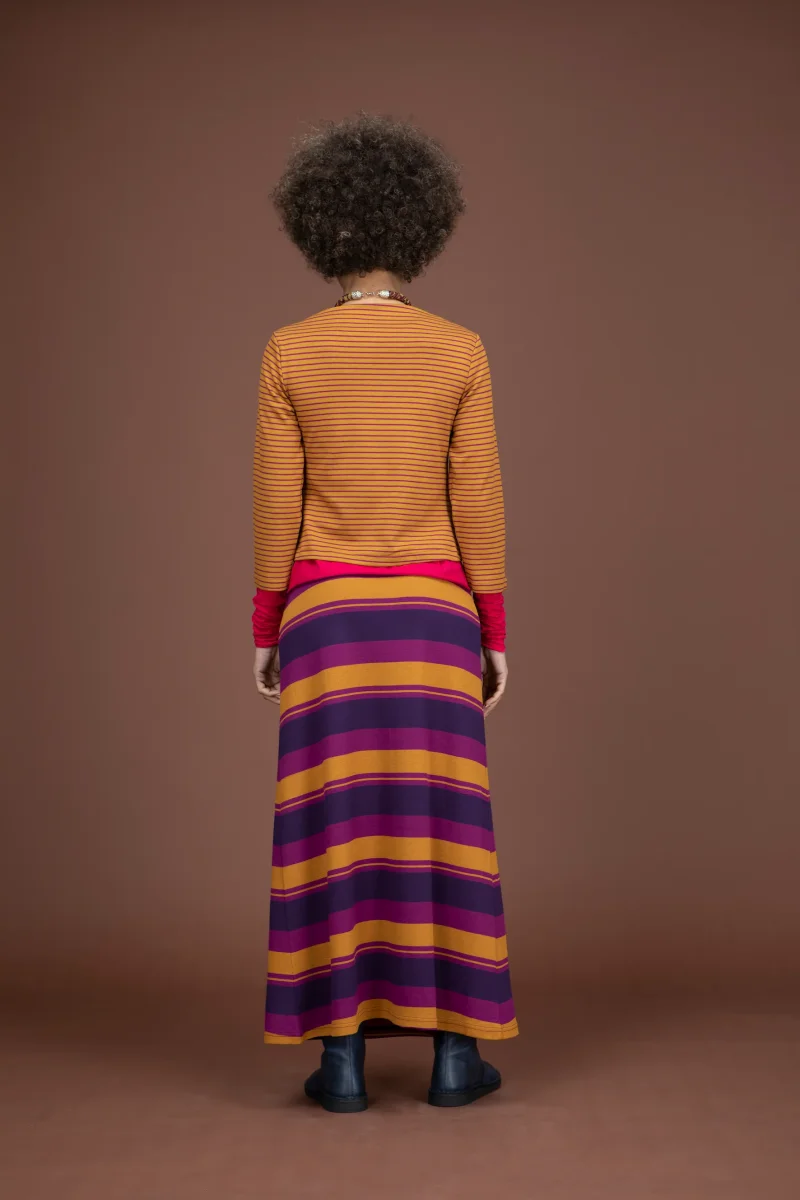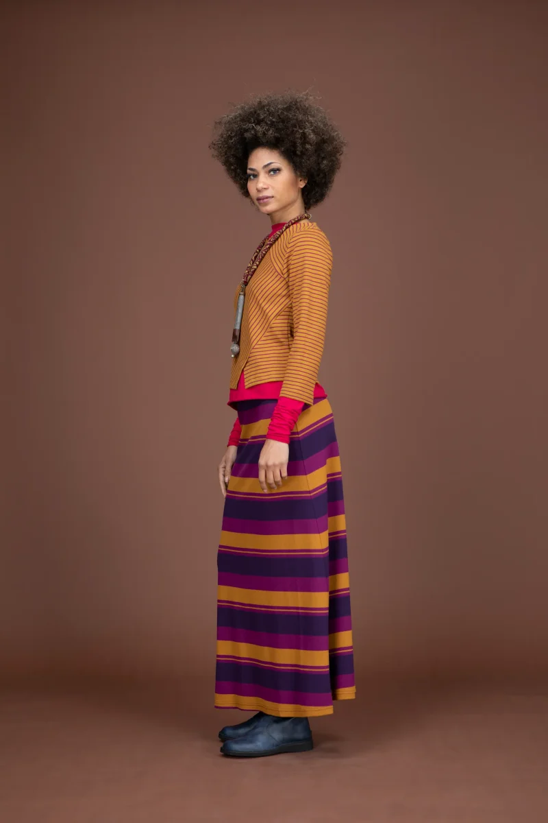 Gonna in punto Milano a trapezio con elastico in vita, lunghezza alla caviglia.