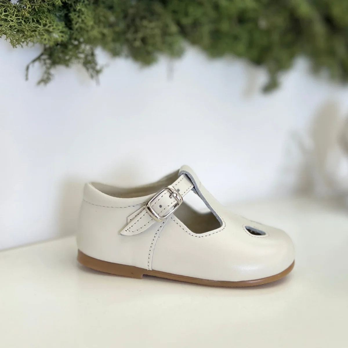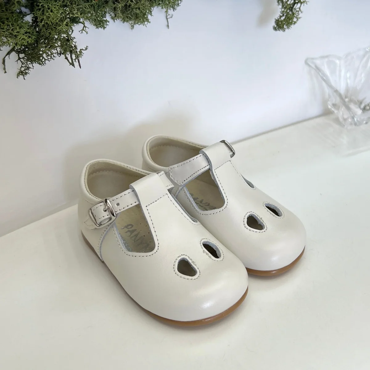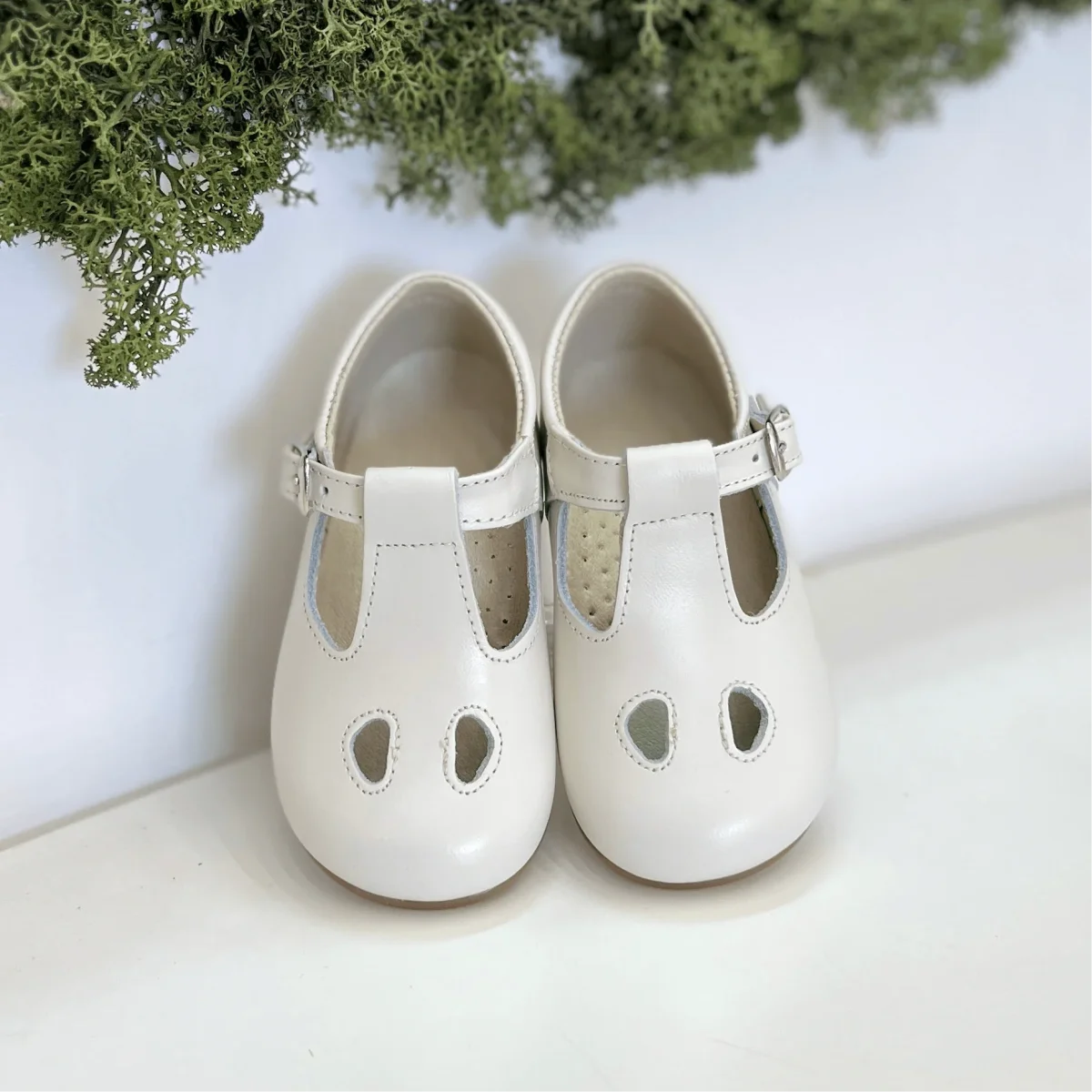 Inglesina con occhiello bimbo in pelle, cinturino regolabile, plantare anatomico e suola antiscivolo.