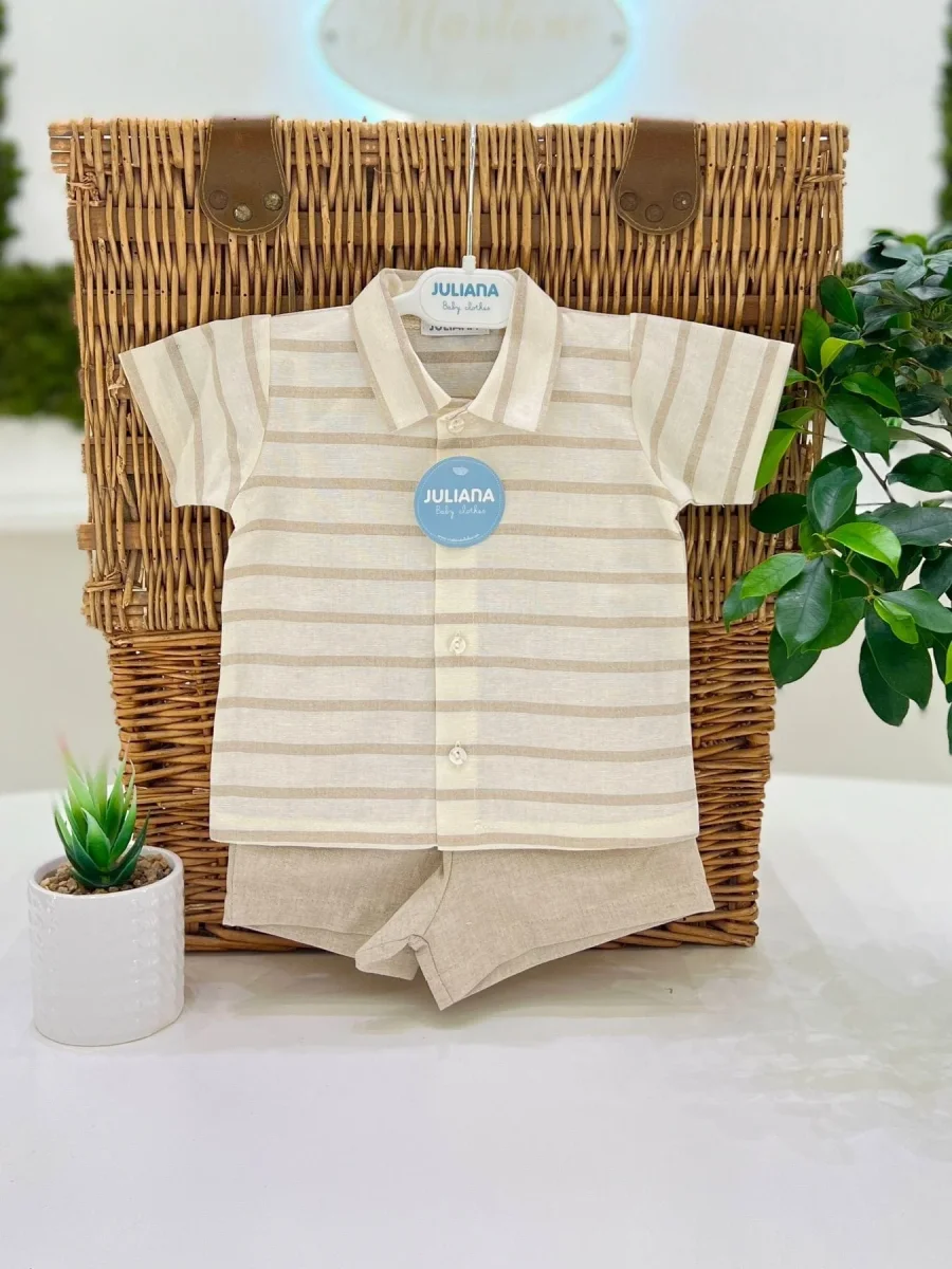 Completo due pezzi con camicia e pantaloncino in misto lino.