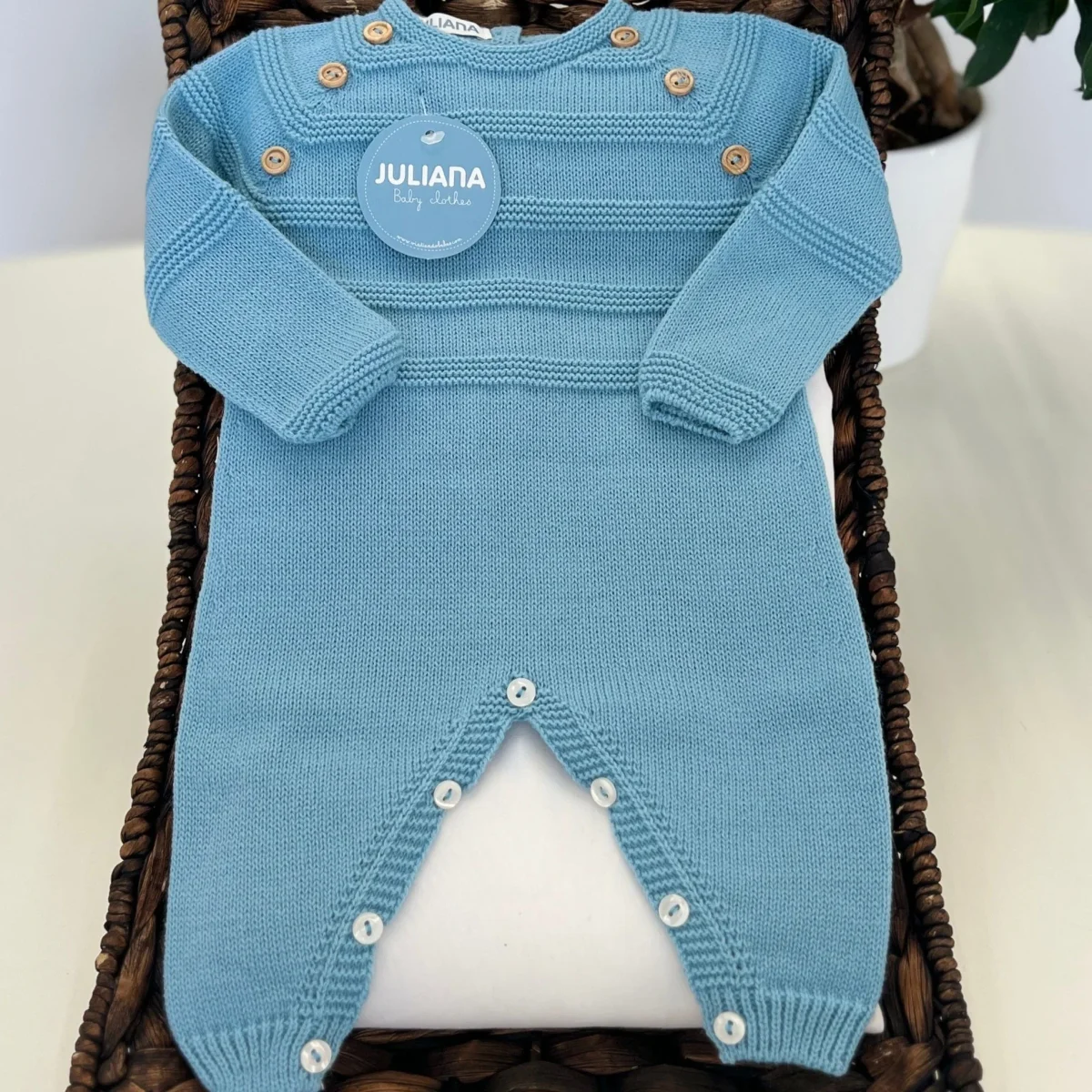 Questa tutina per neonato celeste, realizzata in lana sintetica, è decorata con una raffinata lavorazione a righe tono su tono. I bottoncini antipanico, situati ai lati delle spalle e sul cavallo, rendono il cambio del pannolino semplice e veloce, garantendo al contempo una vestibilità sicura e confortevole. Un capo elegante e pratico per mantenere il tuo piccolo al caldo con stile.