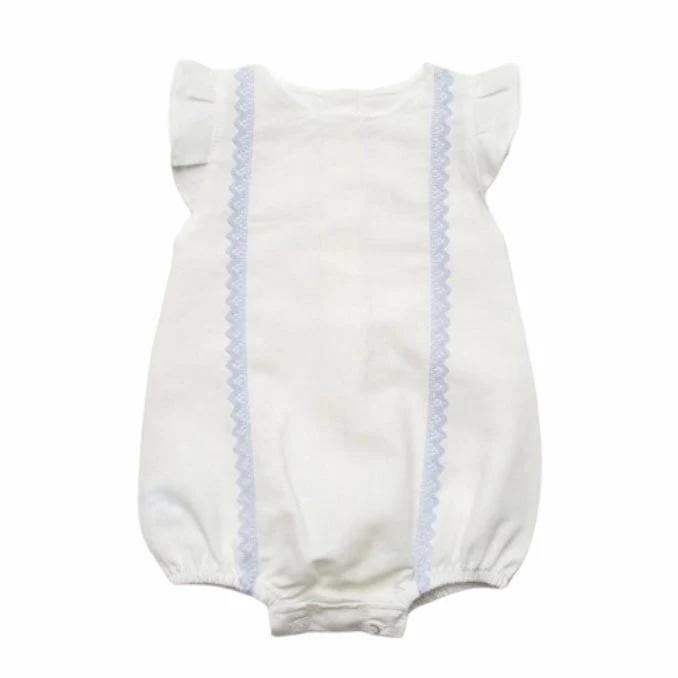 Pagliaccetto di lino e cotone bianco con inserti azzurri