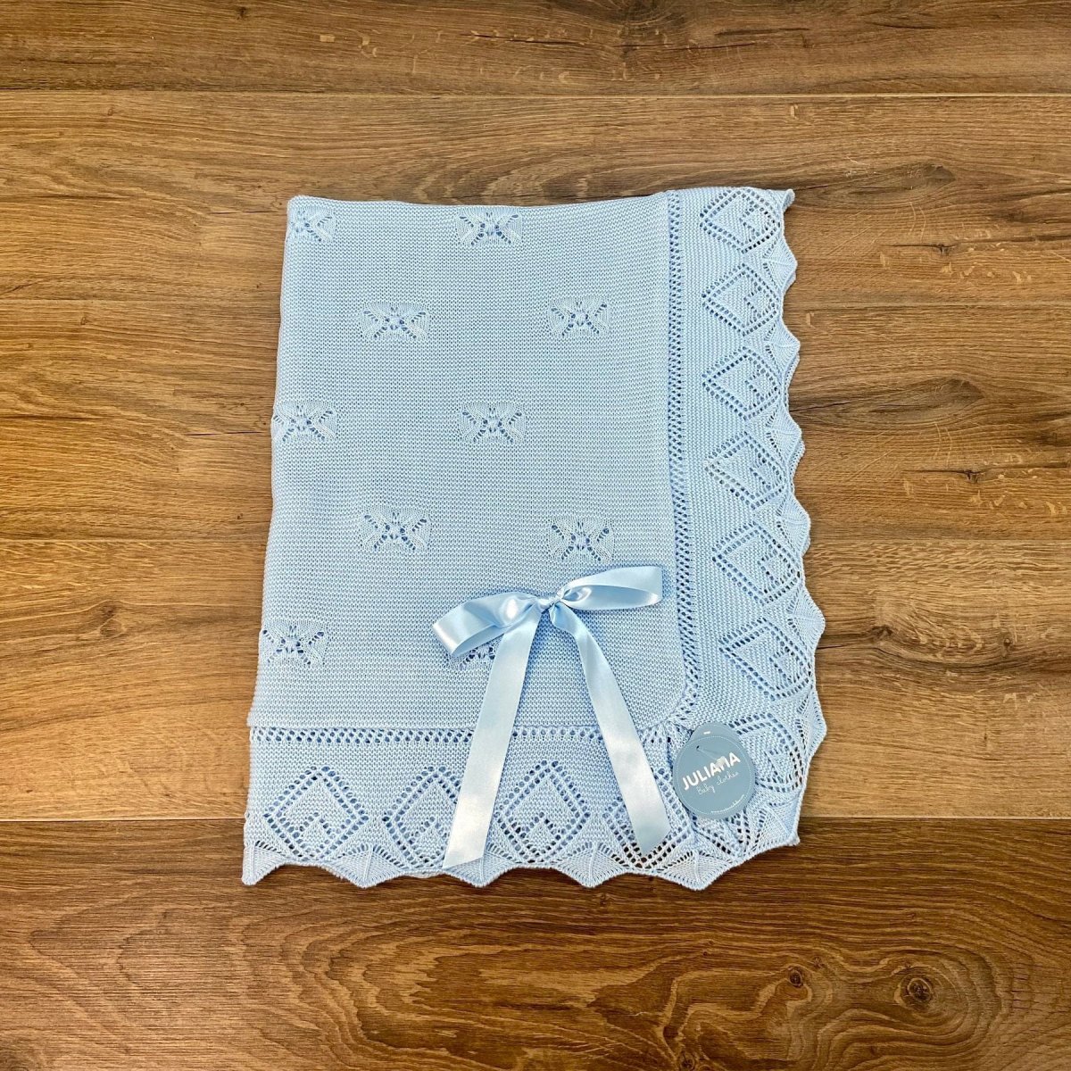 Copertina con bordatura traforata e fiocco.