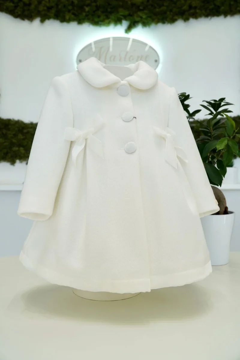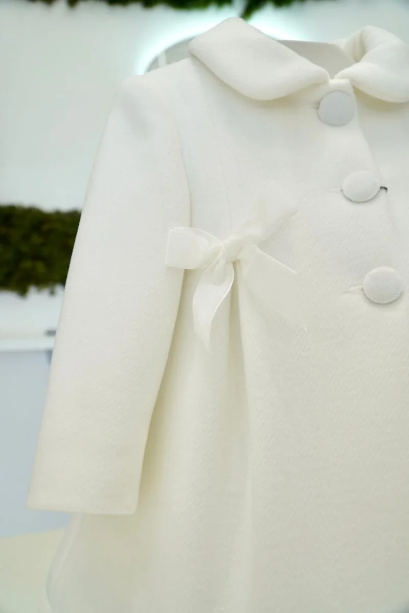 Cappotto in panna traforato imbottito con fiocchetti e pieghe sul davanti