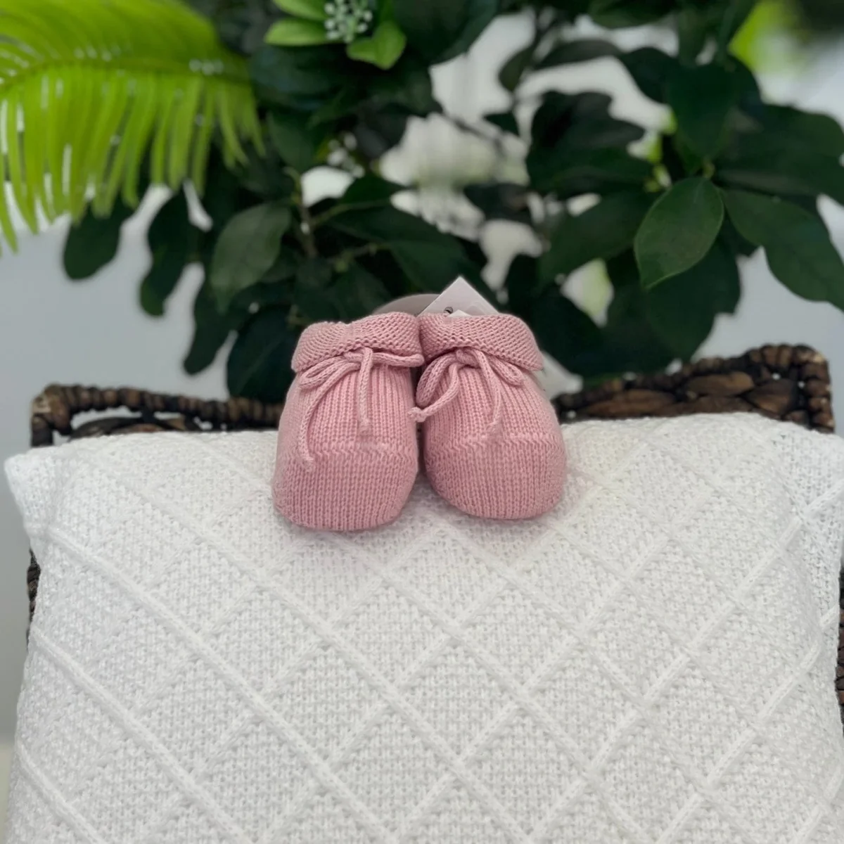 Morbide e traspiranti, con lacci in cordoncino per una vestibilità comoda. Perfette per i primi giorni del neonato.