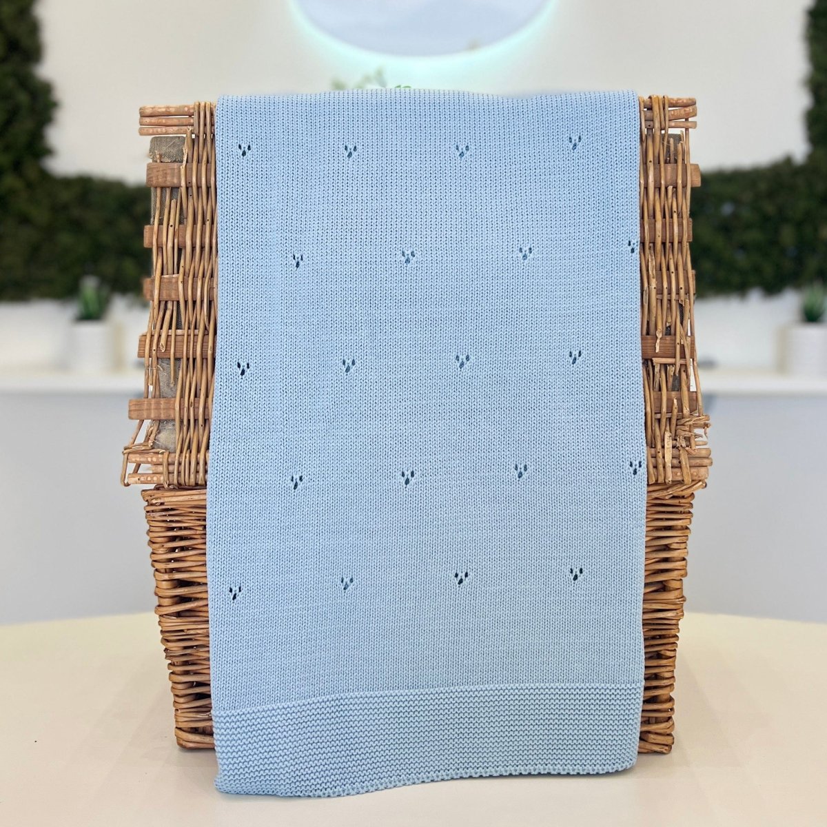 Realizzata in morbido filo di cotone, questa copertina traforata offre un delicato comfort, ideale per avvolgere il neonato nei primi giorni. Leggera e traspirante, garantisce calore senza rinunciare alla freschezza.