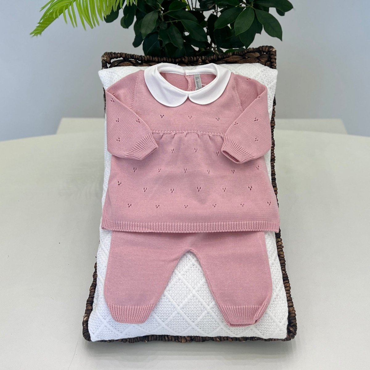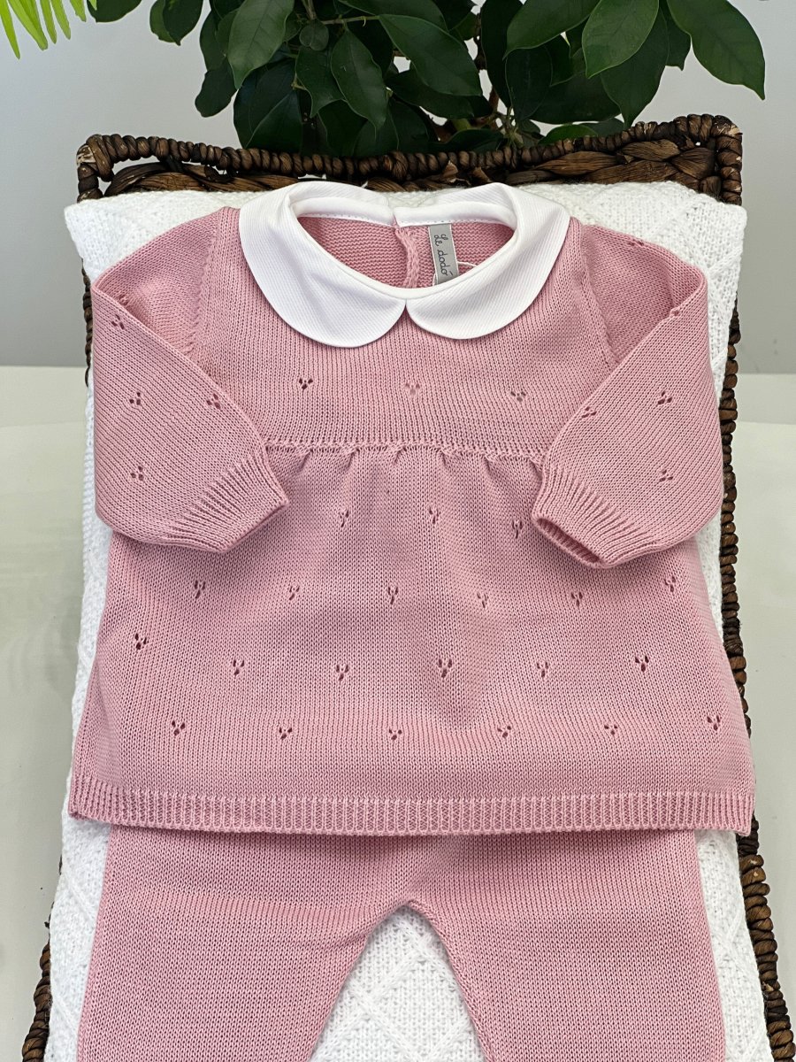 Elegante e delicata, questa tutina lunga in filo di cotone rosa antico presenta una maglia dalla linea morbida che conferisce un tocco di grazia al look. Il colletto in piquet aggiunge un dettaglio di classe, mentre la morbidezza del tessuto garantisce comfort e traspirabilità fin dai primi giorni.