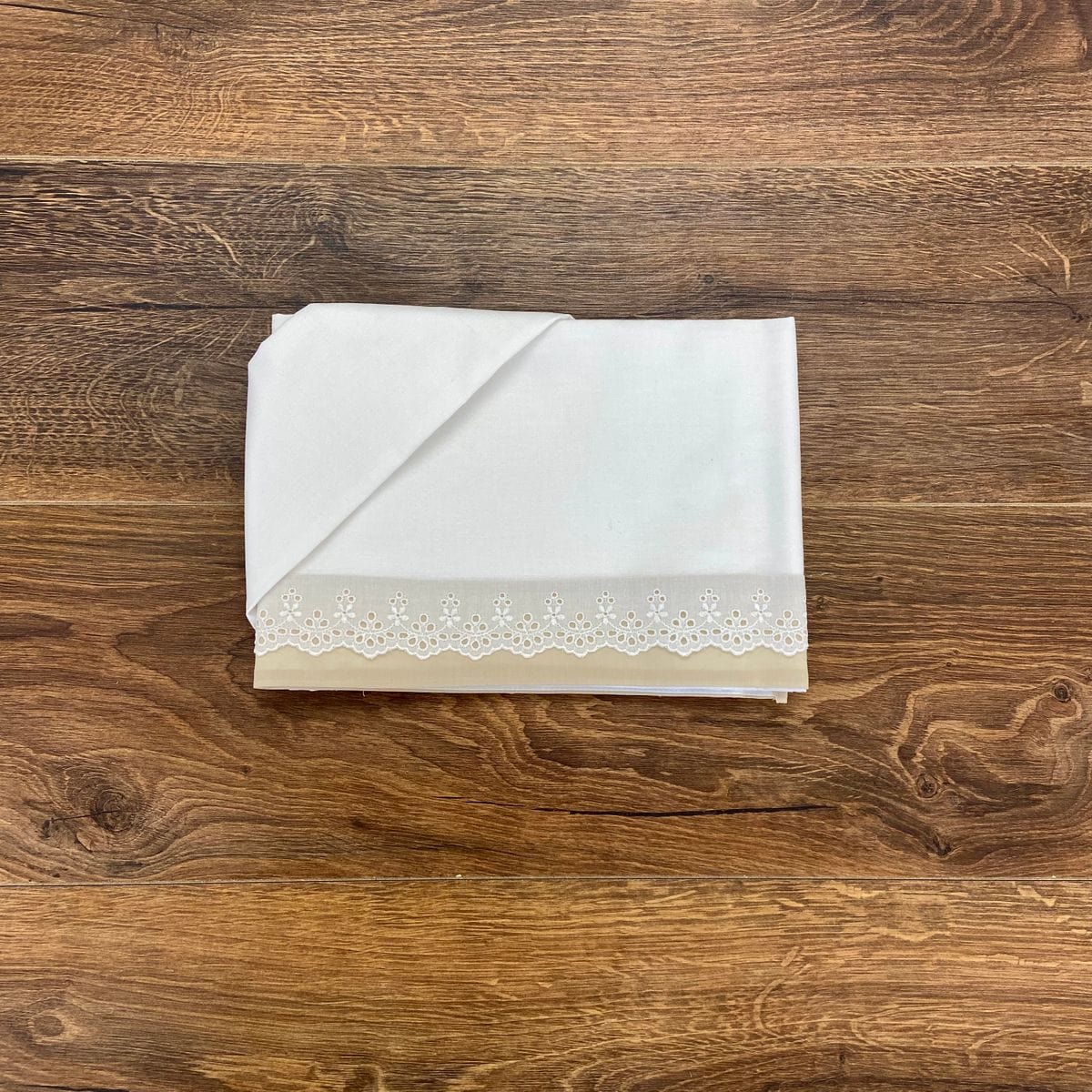 Lenzuolino in cotone con riporti in pizzo san gallo.