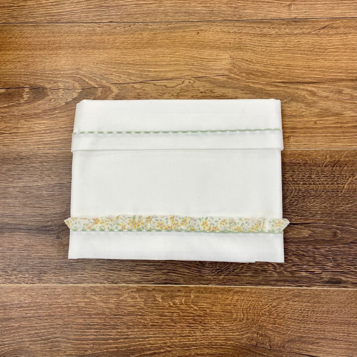 Lenzuolino in cotone con rouches floreale.