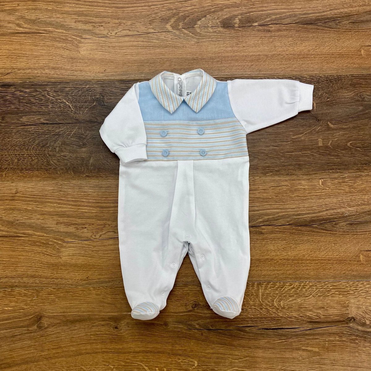 Tutina intera con dettagli in lino e ricamo a rilievo.