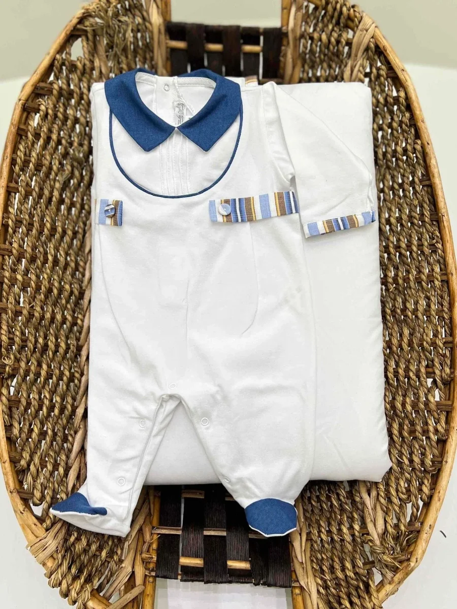 Tutina intera neonato in cotone con trama a righe.