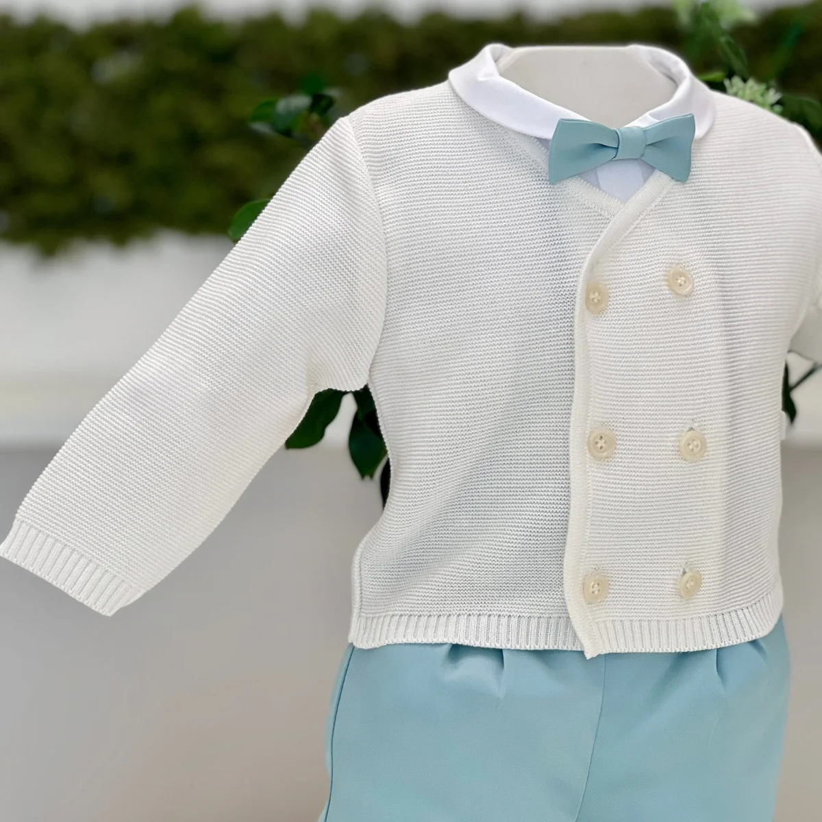 Cardigan doppiopetto in filo di cotone bianco latte, elegante e versatile, perfetto per un tocco di classe in ogni occasione.