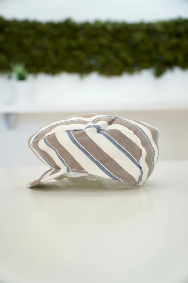 Cappello Battesimale in beige e panna con righino blu