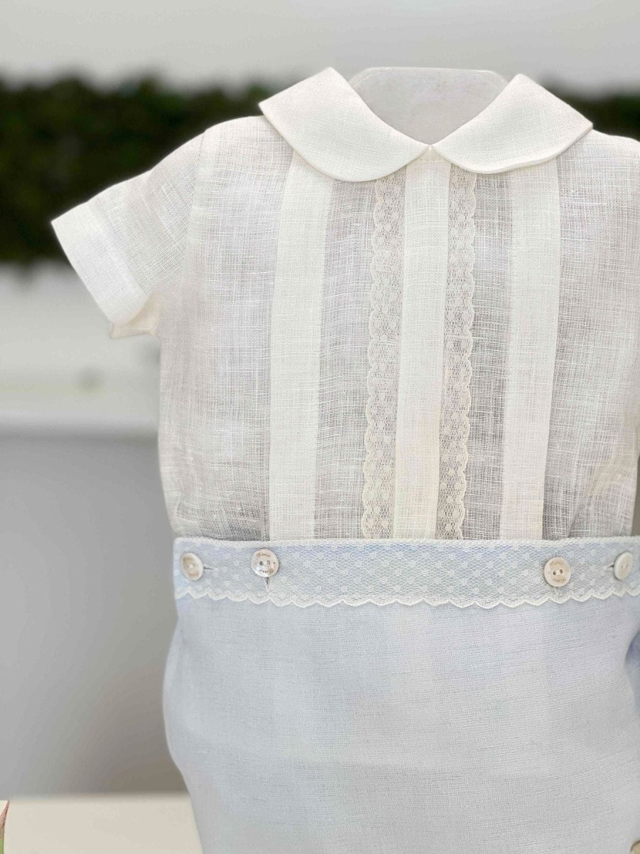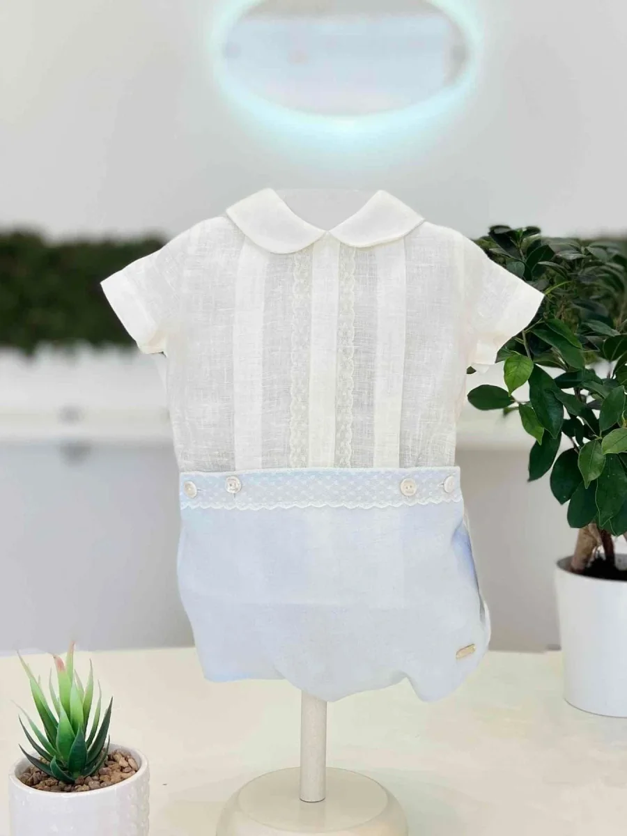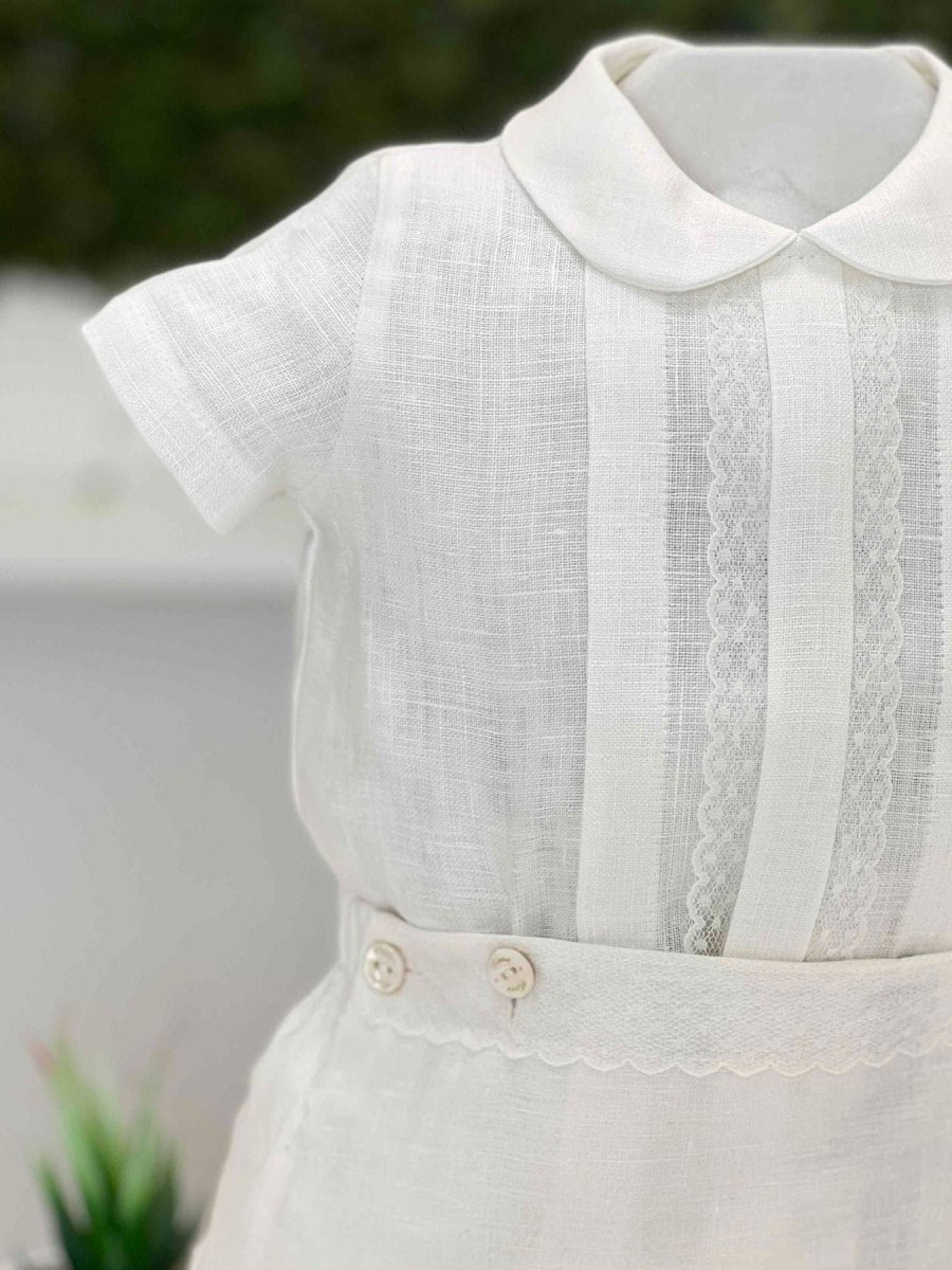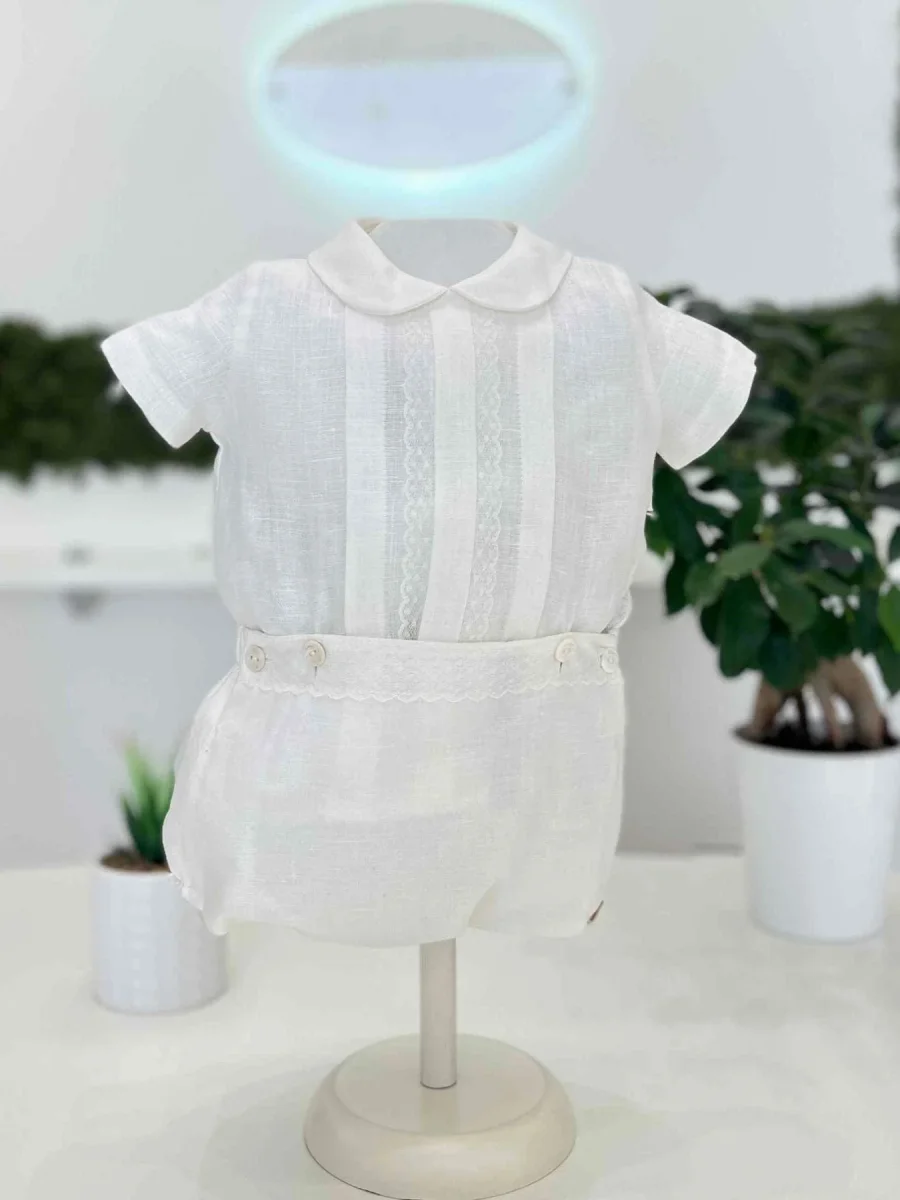 Pagliaccetto battesimale bimbo in lino due pezzi.