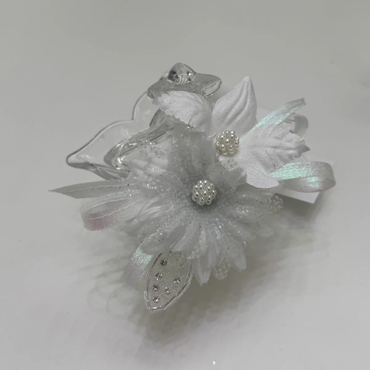 Abito battesimale dal colore verde fresco e moderno, che dona un tocco di novità e freschezza all’occasione. La gonna in tulle classico e glitterato è impreziosita da un elegante bordo in pizzo ramage, che arricchisce il movimento della stoffa. Il corpino bianco, con maniche ad aletta, è decorato con ramage floreali e punti luce, che catturano la luce con delicatezza. La cintura in lurex verde, che richiama il tono del fondo della gonna, è completata da un elegante dettaglio floreale, conferendo all’abito un aspetto raffinato e contemporaneo. Un look innovativo e raffinato, perfetto per celebrare il battesimo con stile.
