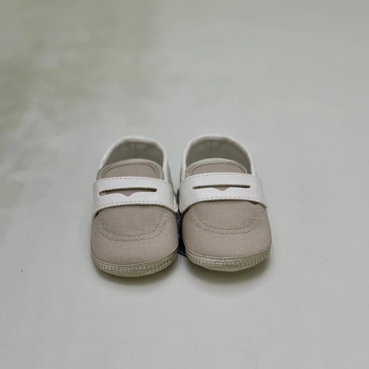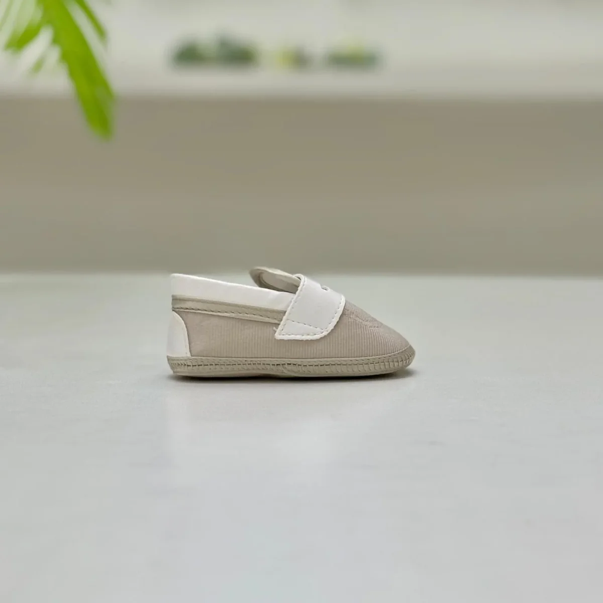 Mocassino elegante per neonato, nella colorazione beige. Realizzato in materiali di alta qualità, offre un look raffinato e un comfort impeccabile per i piedini del piccolo.