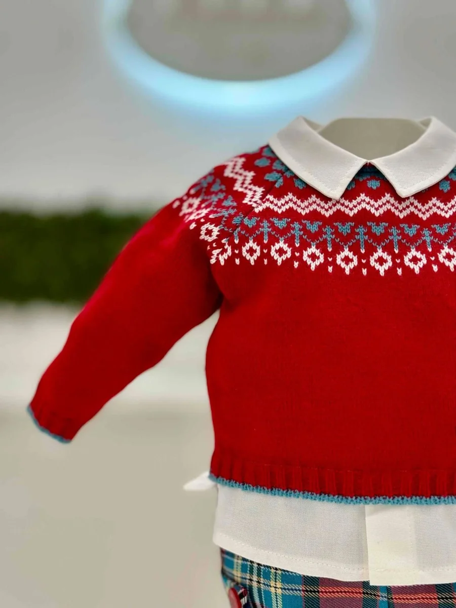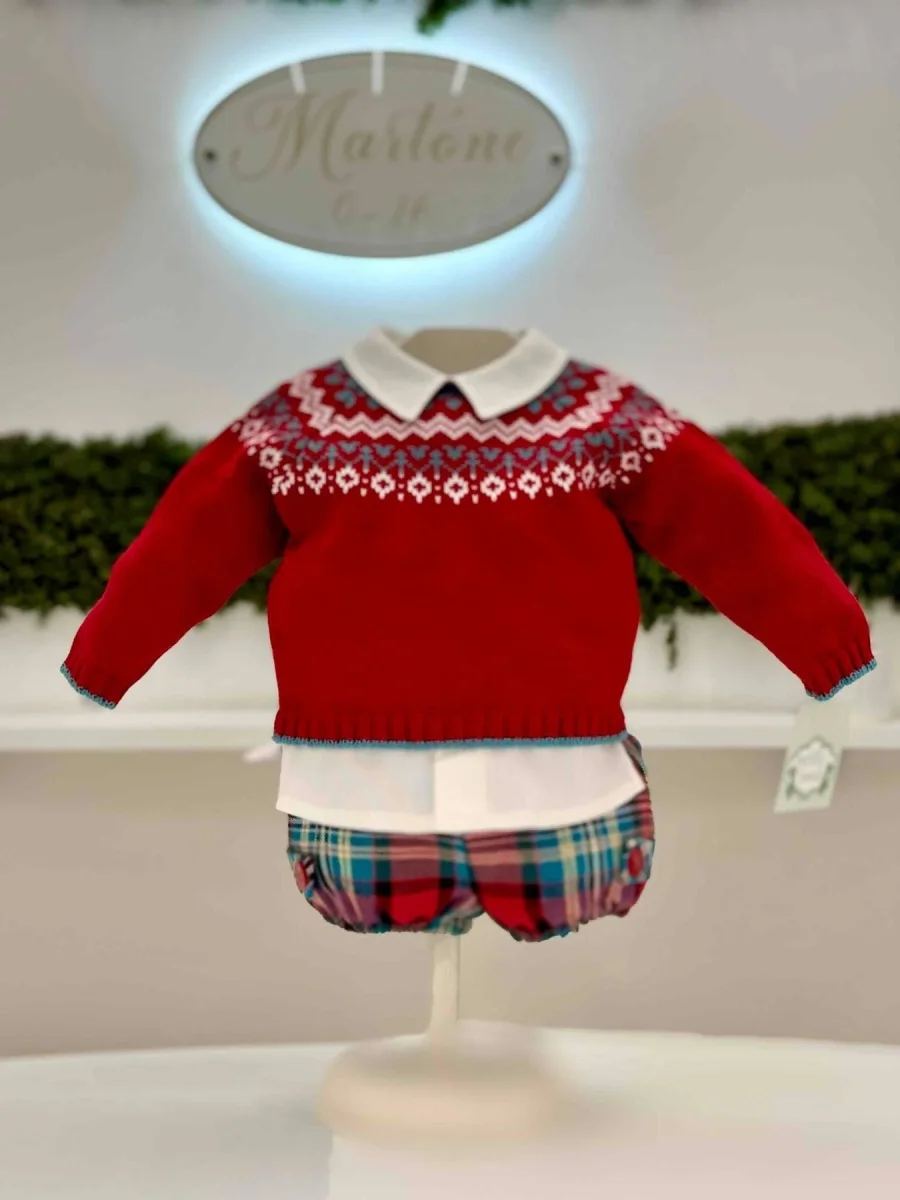 completo maglione con finta camicia e pantaloncino scozzese
