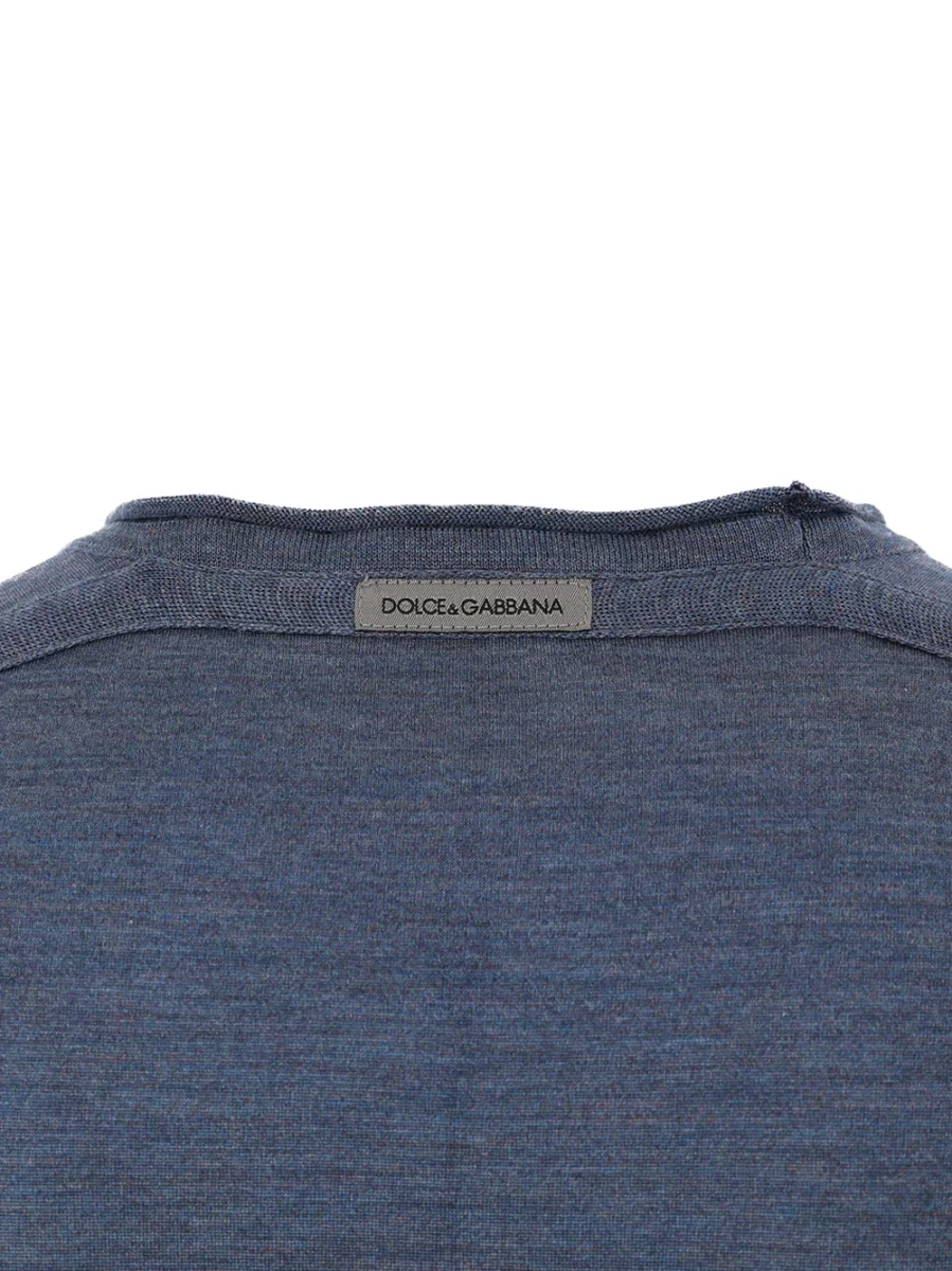 Maglia Basic a Maniche Lunghe in Seta Dolce & Gabbana. In blu grigio, scollo tondo, maniche lunghe, linea basic, tessuto morbido e lucido