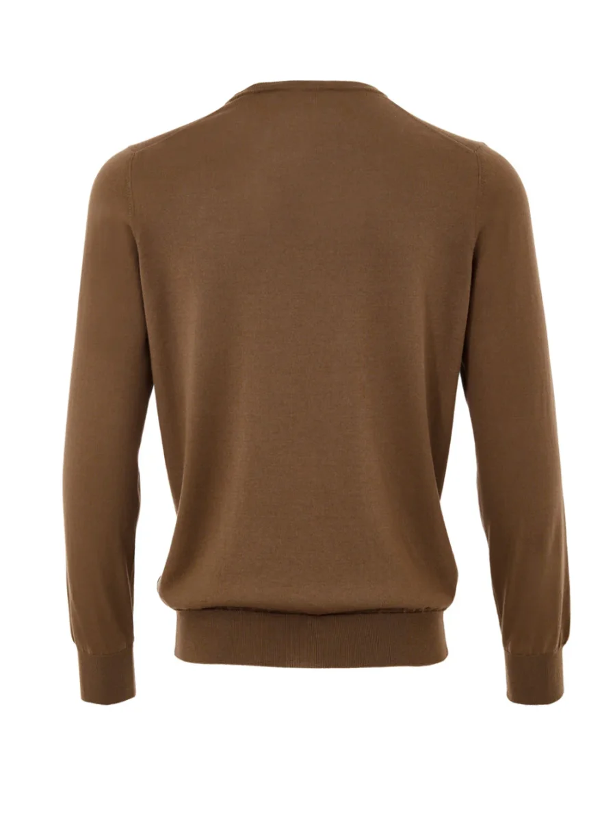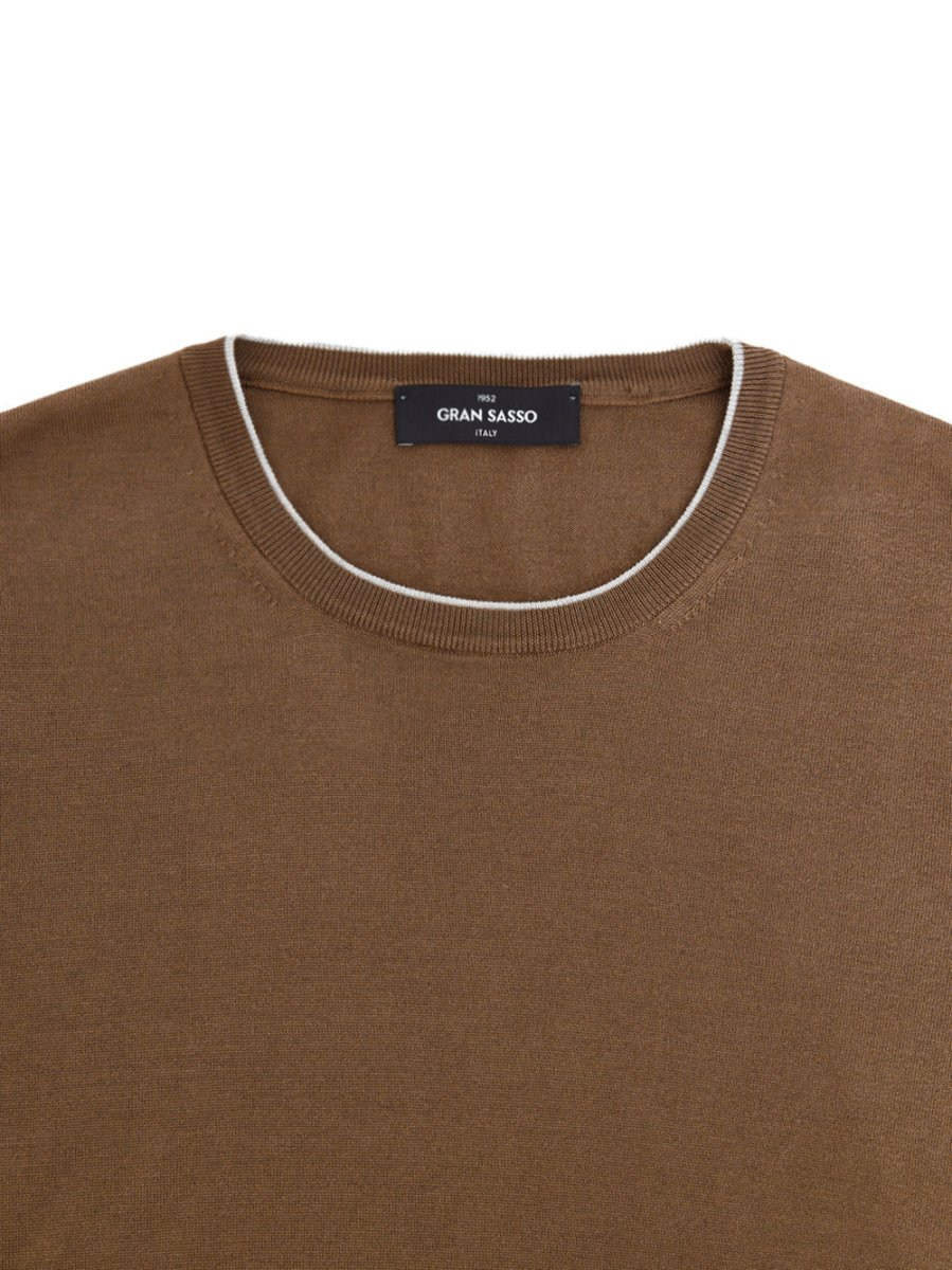 Maglia Girocollo Marrone in Misto Seta Gran Sasso. Linea classica, scollo tondo con riga a contrasto, morbida e leggera al tatto.