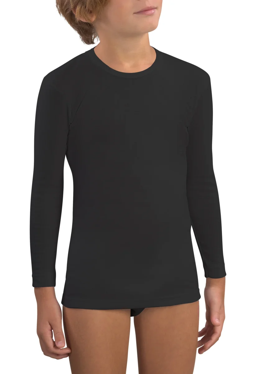La Maglia Termica Bambino Manica Lunga Girocollo è il capo perfetto per affrontare l’inverno con il massimo del comfort. Grazie al tessuto tecnico in 91% Poliammide e 9% Elastan, questa maglia garantisce isolamento termico e traspirabilità, mantenendo il corpo sempre asciutto e al caldo.