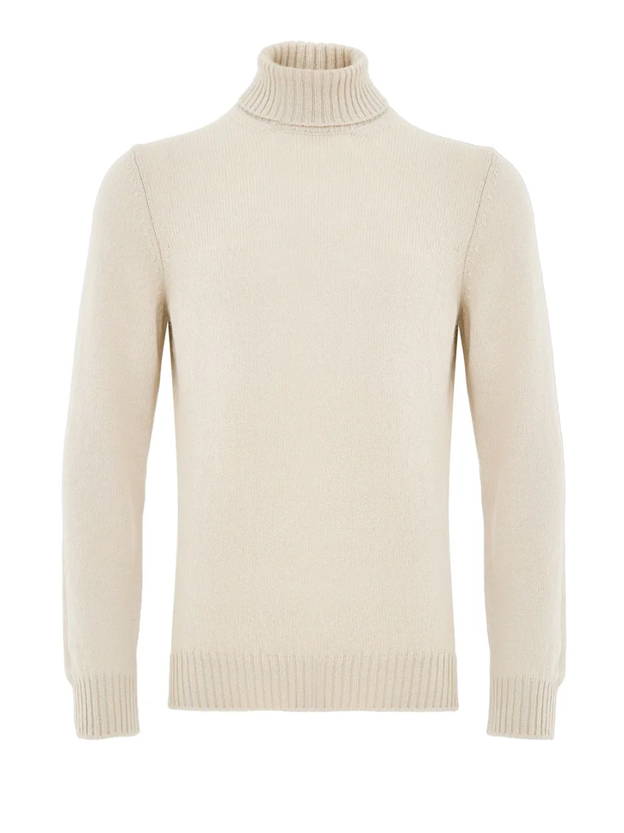 Maglione Dolcevita Beige in Lana Gran Sasso. Collo alto a costine, vestibilità regular.
