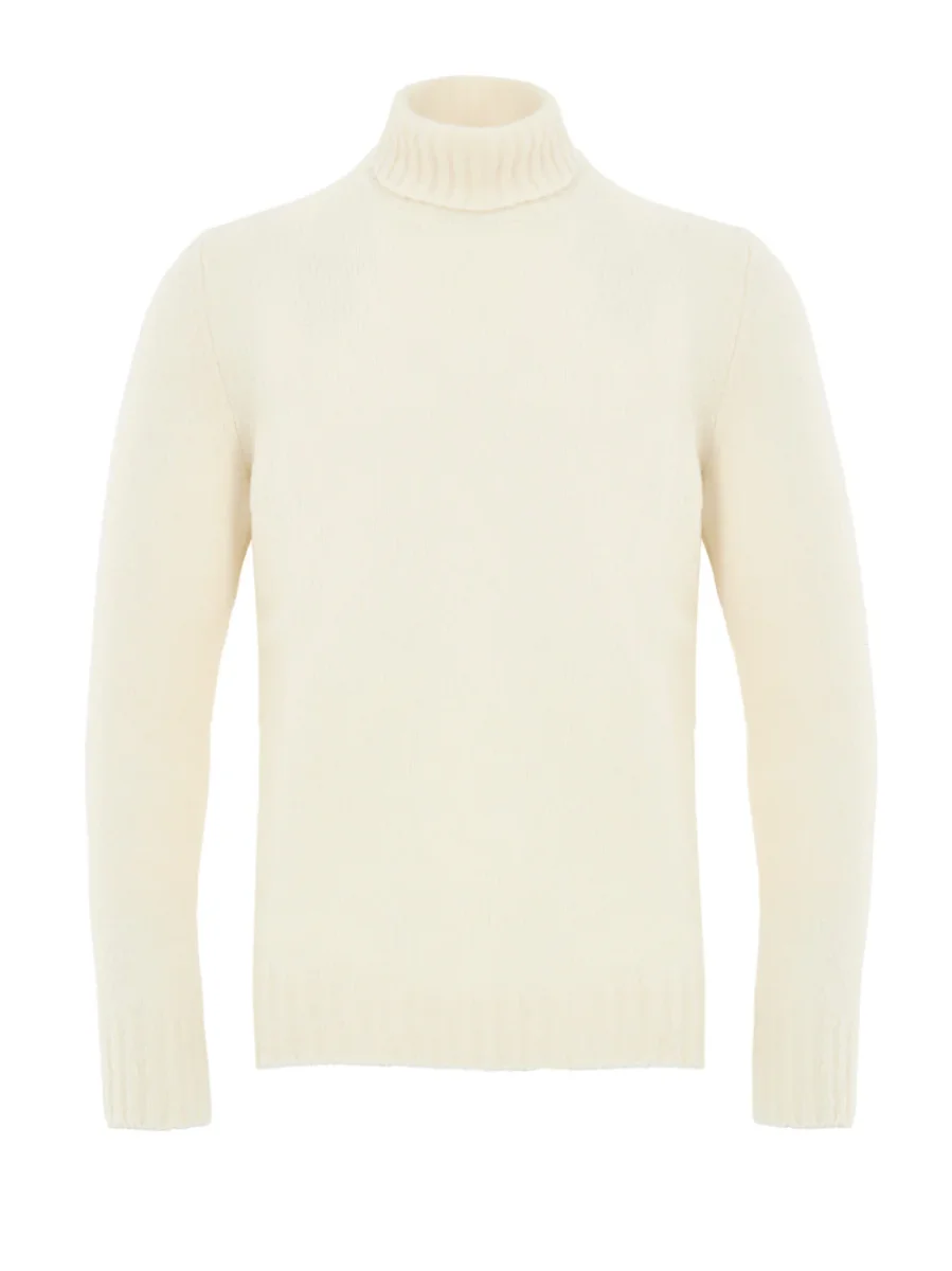 Maglione Dolcevita Bianco in Lana Effetto Bouclé Gran Sasso. Collo alto a costine, vestibilità regular.