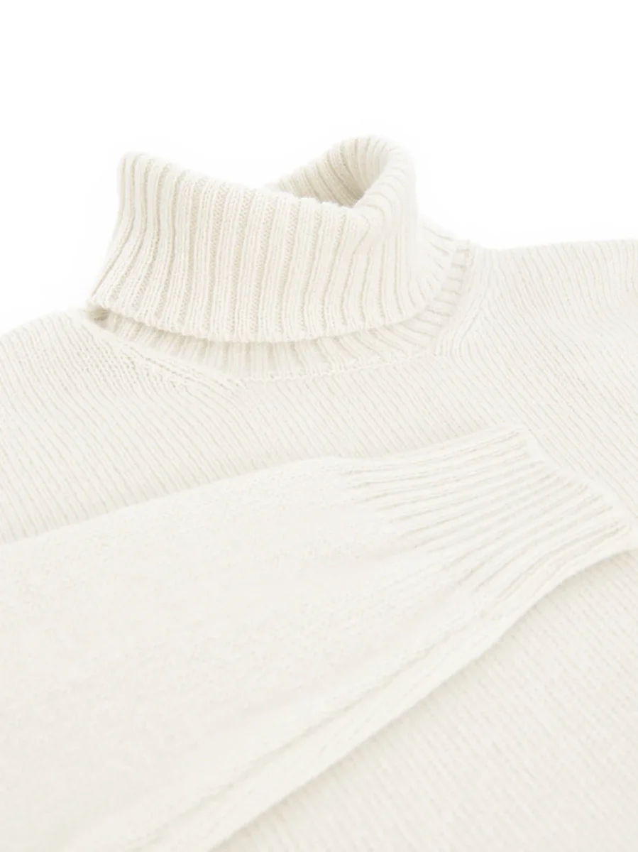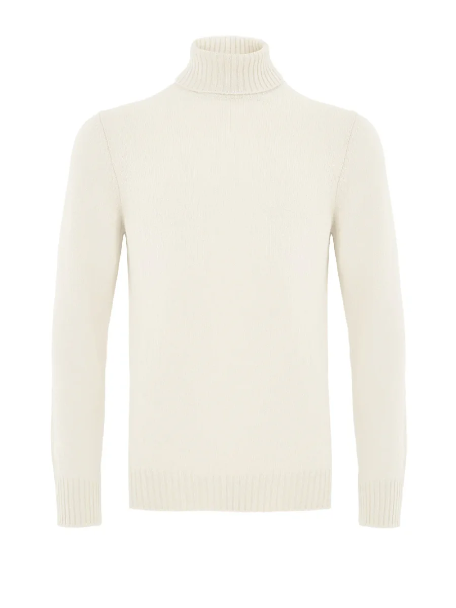 Maglione Dolcevita in Lana Bianco Gran Sasso. Collo alto a costine, vestibilità regular.