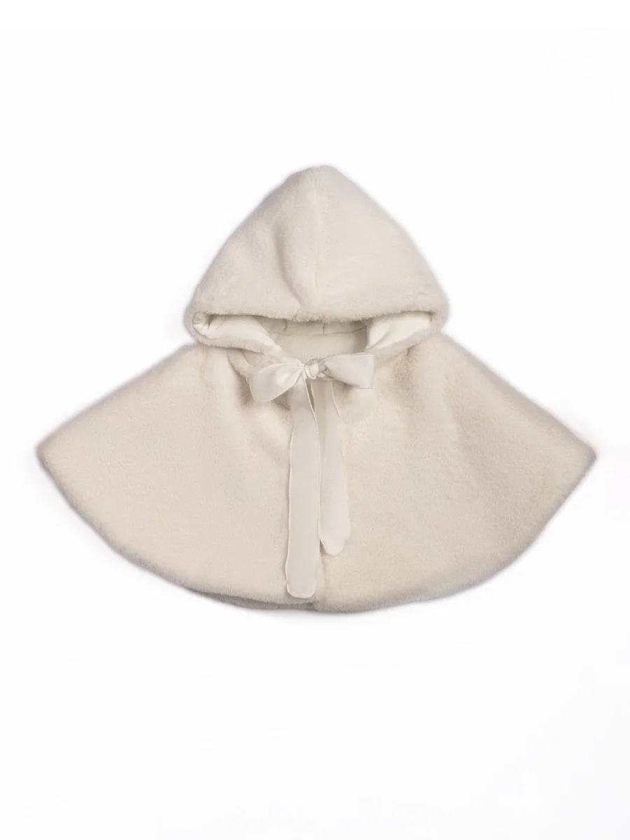 Proteggi la tua bimba dal freddo con tanto stile con questa incantevole mantellina con cappuccio in lana.
